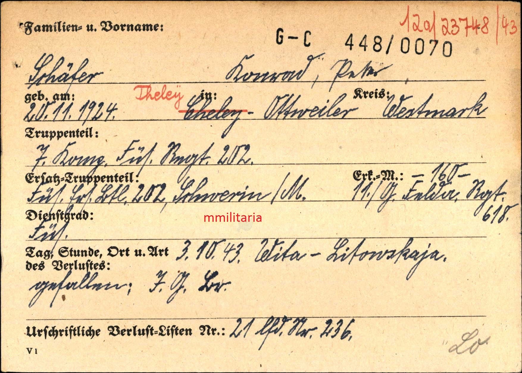 Gefallen am 03.10.1943 südlich von Kiew (Ukraine)