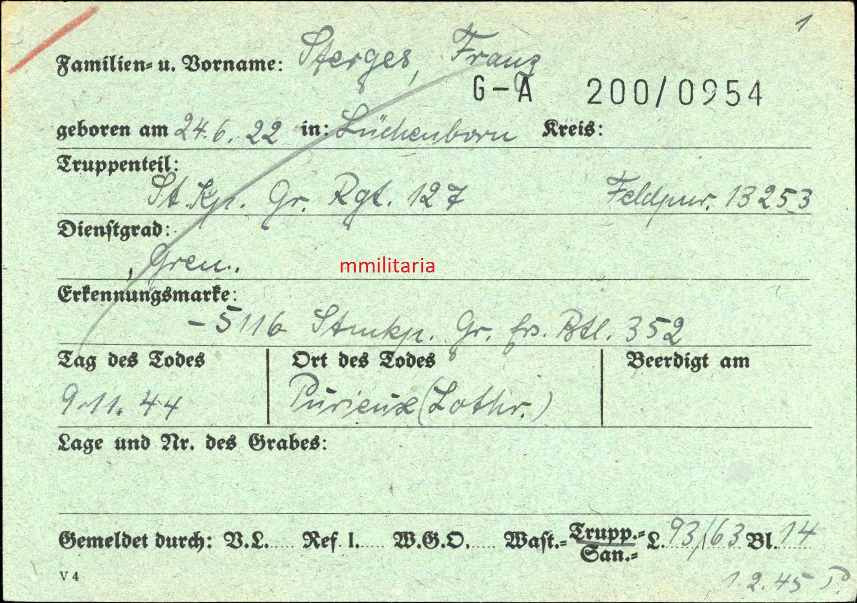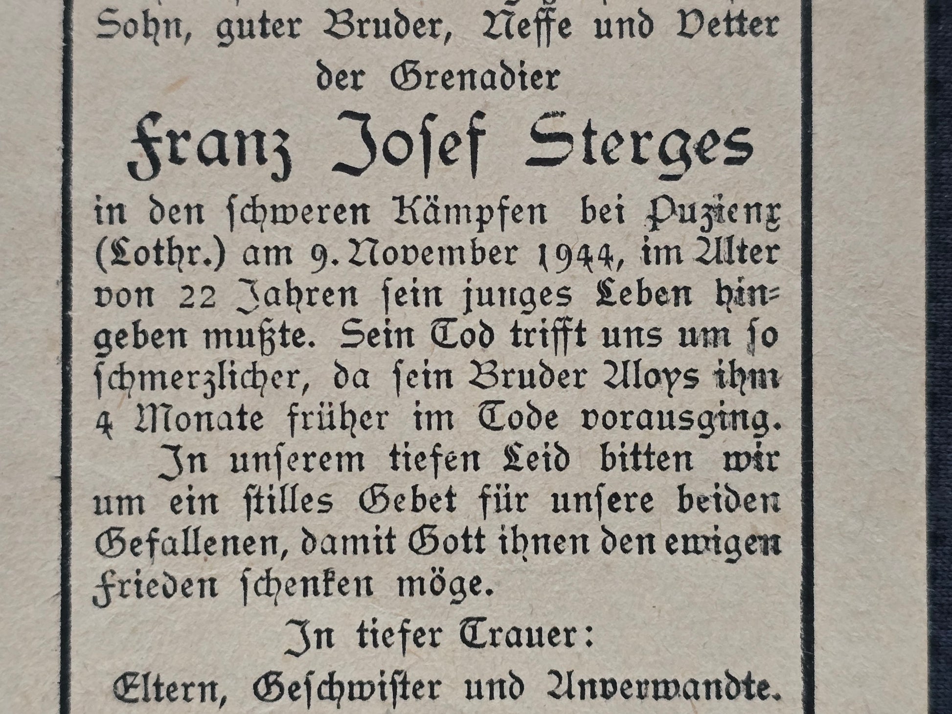 Gefallen am 09.11.1944 bei Purieux (Frankreich)