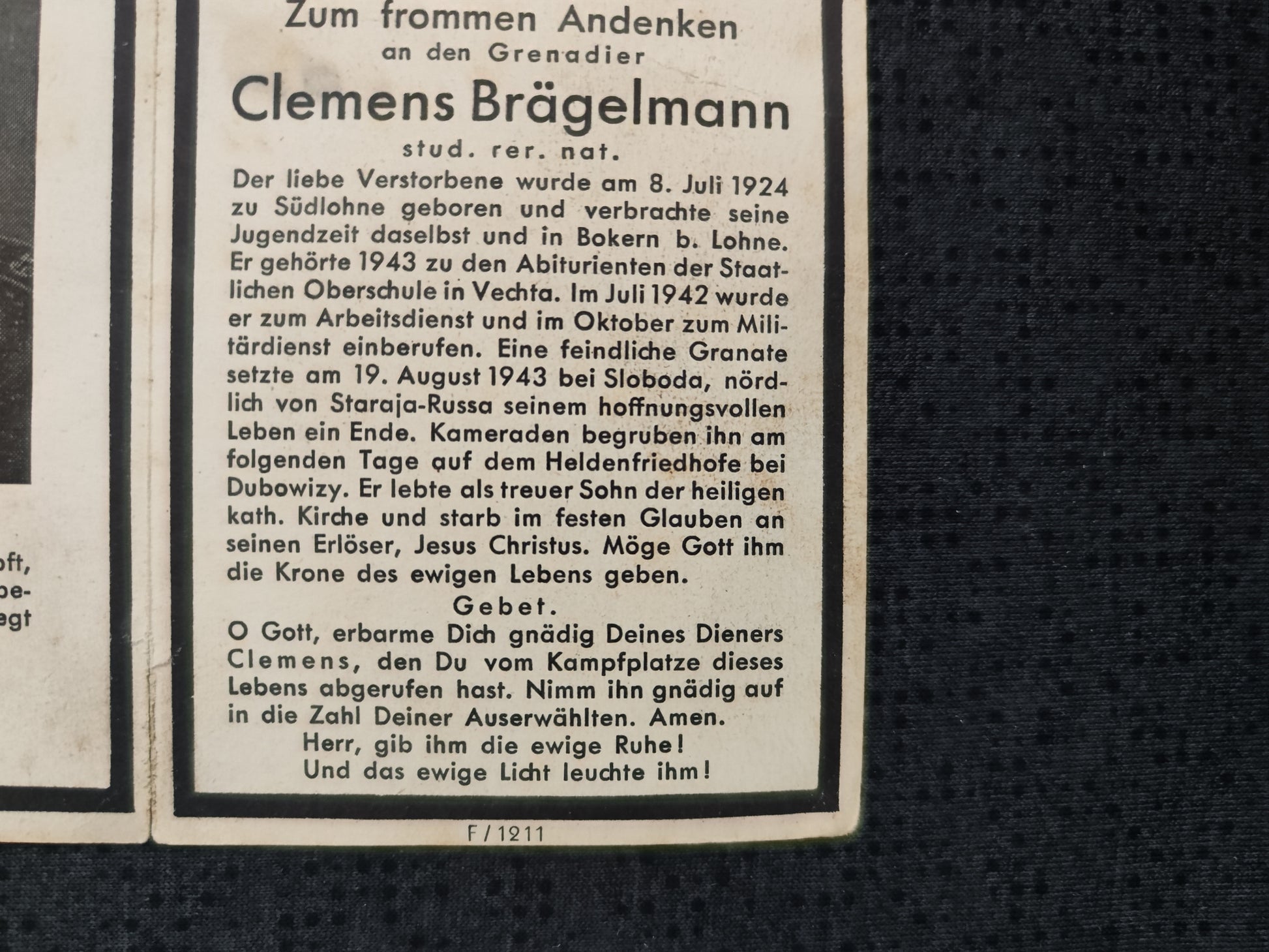 Sterbebild Grenadier Lohne 3. Komp. Gren. Regt. 46 Staraja-Russa Korpowo Russland