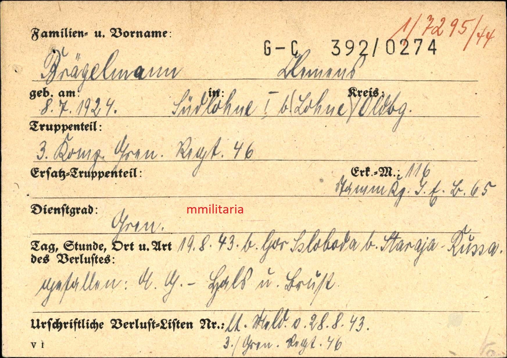 Gefallen am 19.08.1943 bei Staraja-Russa (Russland)