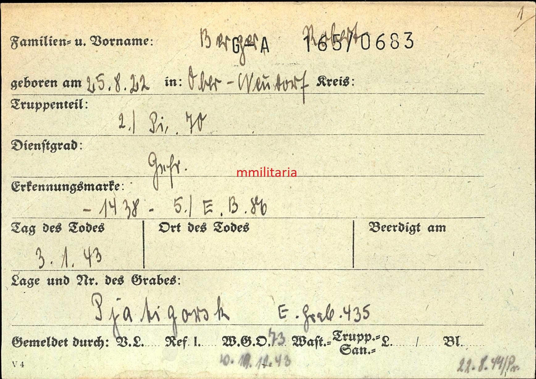 Sterbebild Groß Gefreiter 2. Pionier Btl. 70 Kaukasus Pjatigorsk Russland