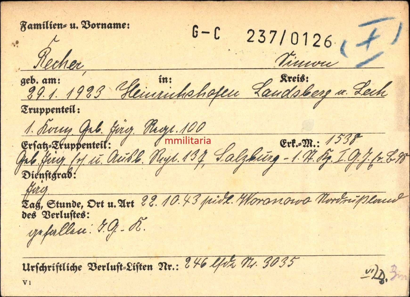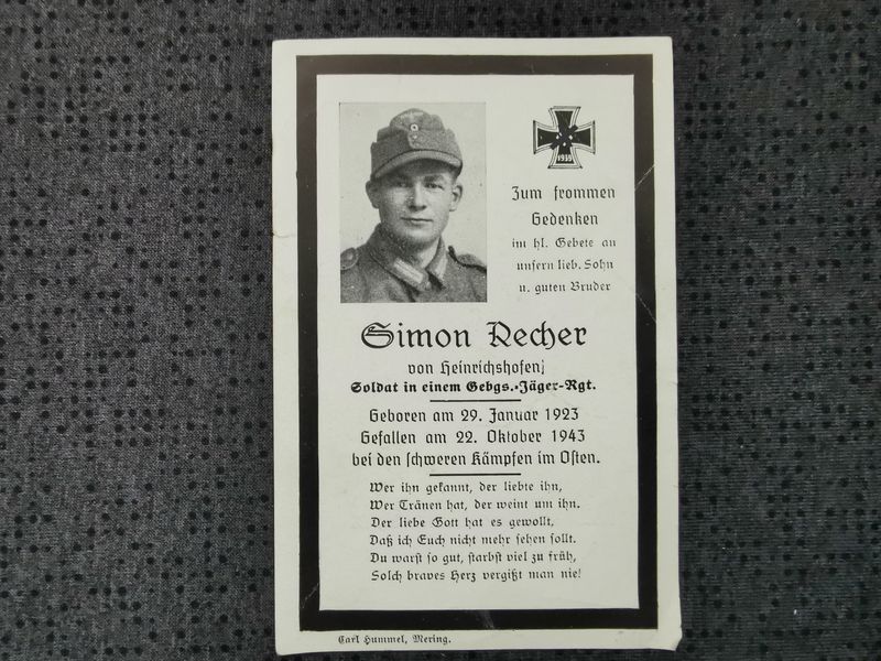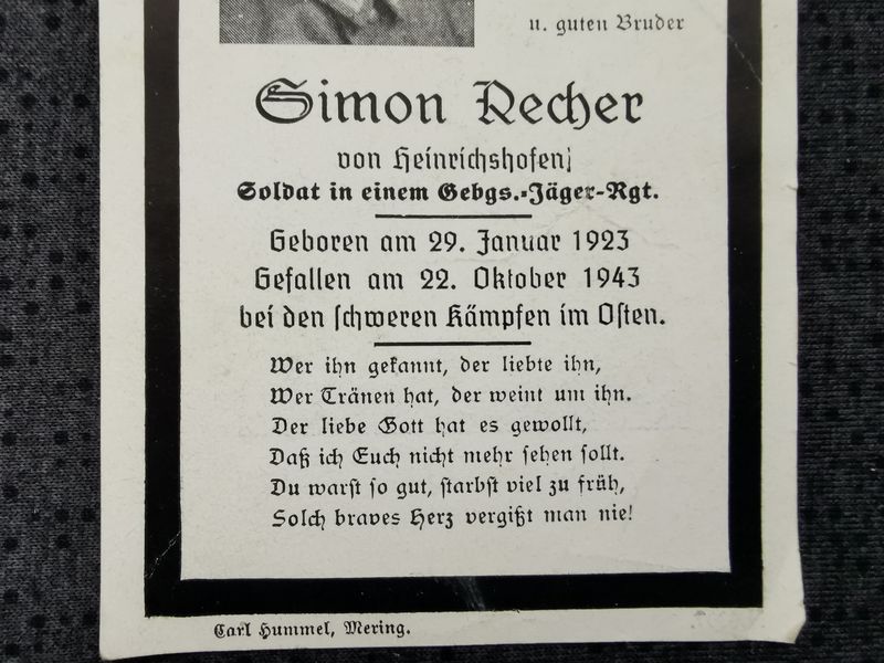 Sterbebild Jäger 1. Komp. Geb. Jäger Regt. 100 Woronowo Sologubowka Russland