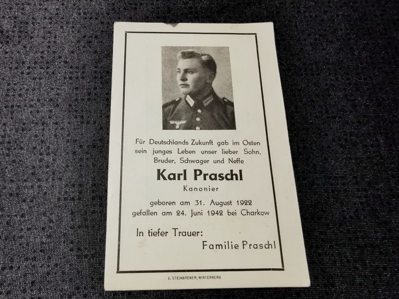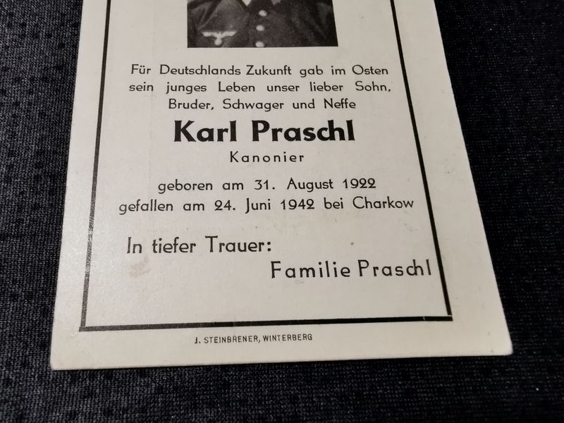 Sterbebild Kanonier 3. Batterie Beob. Abt. 7 Trazilowa Berjosa Weissrussland