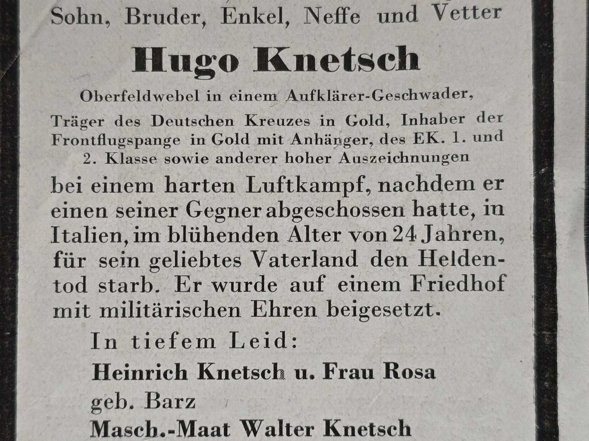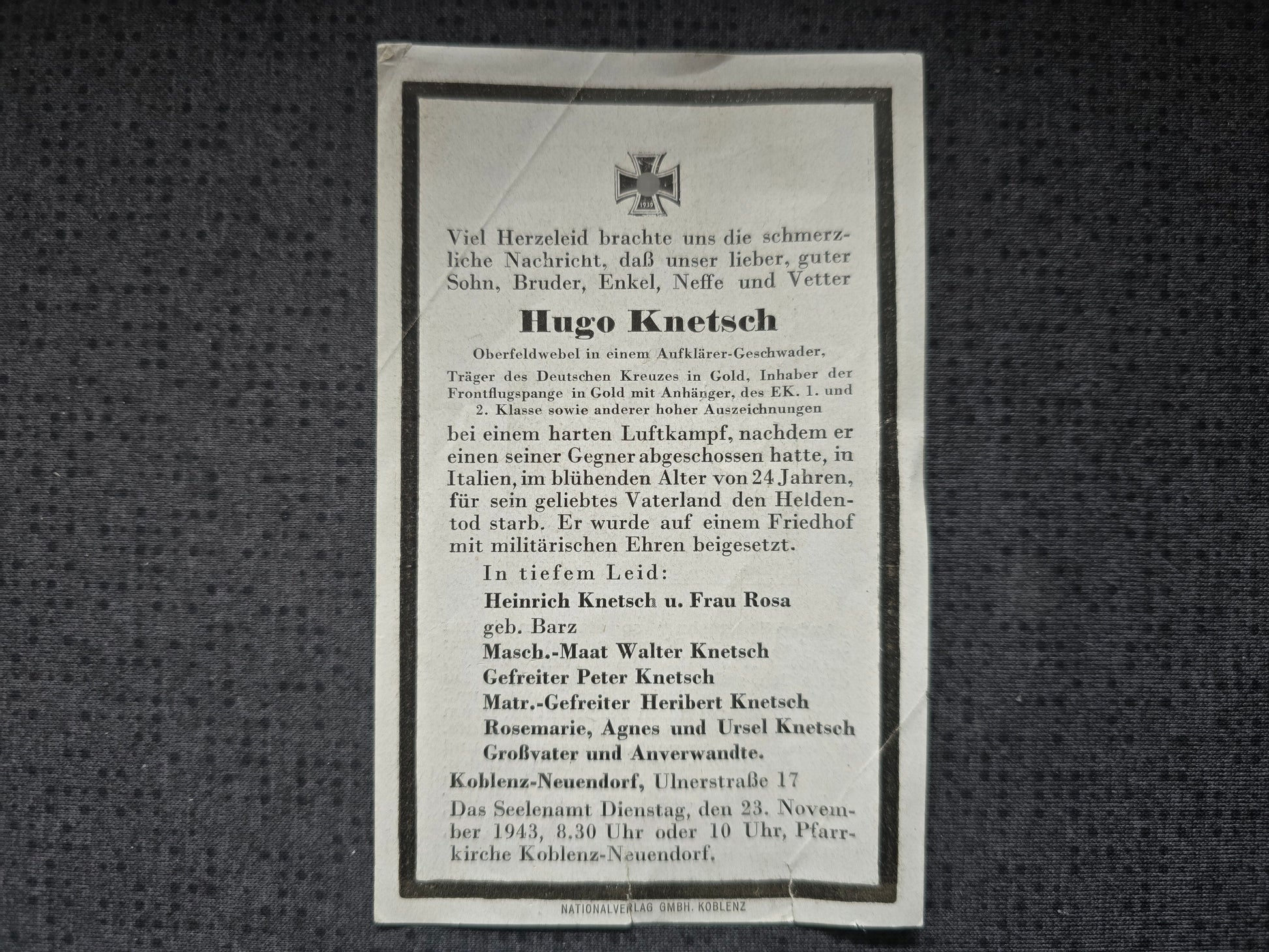 Sterbebild Oberfeldwebel Koblenz Fernaufklärungsstaffel 2(F)/122 DKiG FFS Gold Castigliano Italien