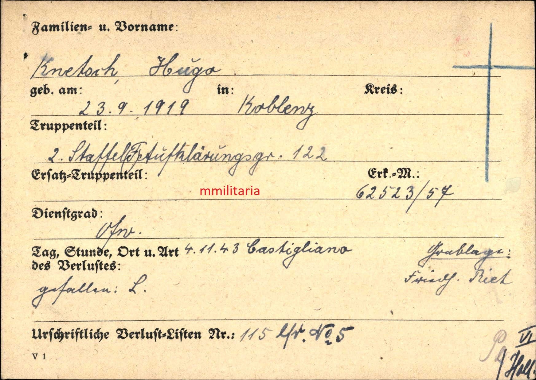 Gefallen am 04.11.1943 in Castigliano (Italien)