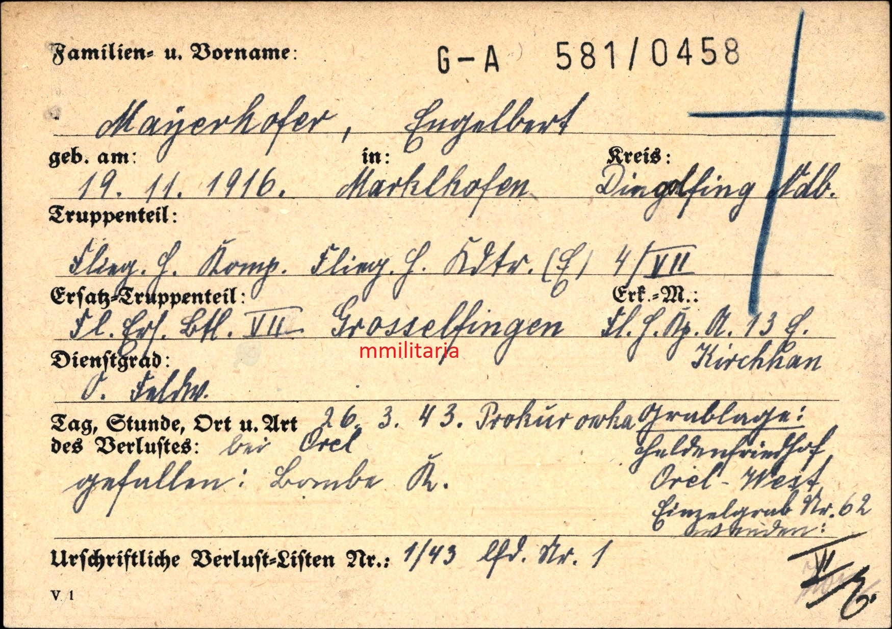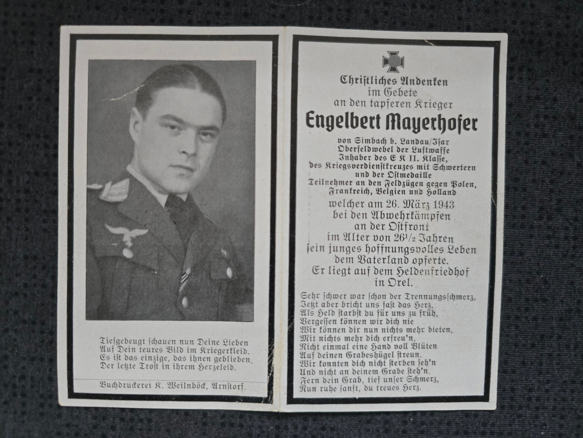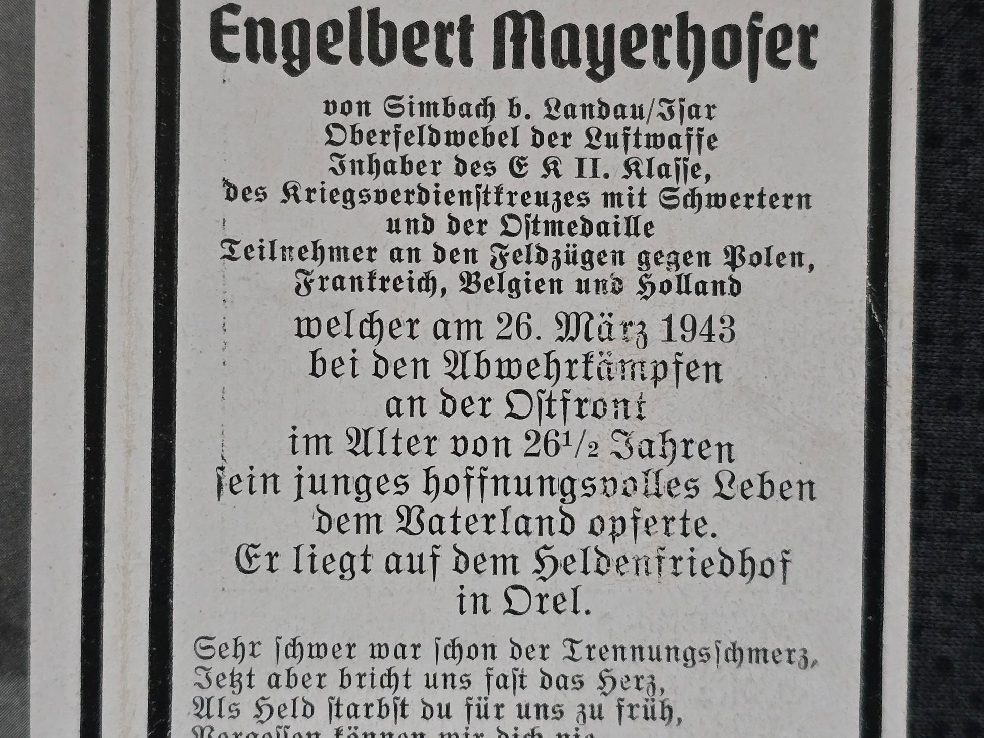 Sterbebild Oberfeldwebel Marklkofen Flieger-Horst Komp. 4/VII Luftwaffe Orel Russland