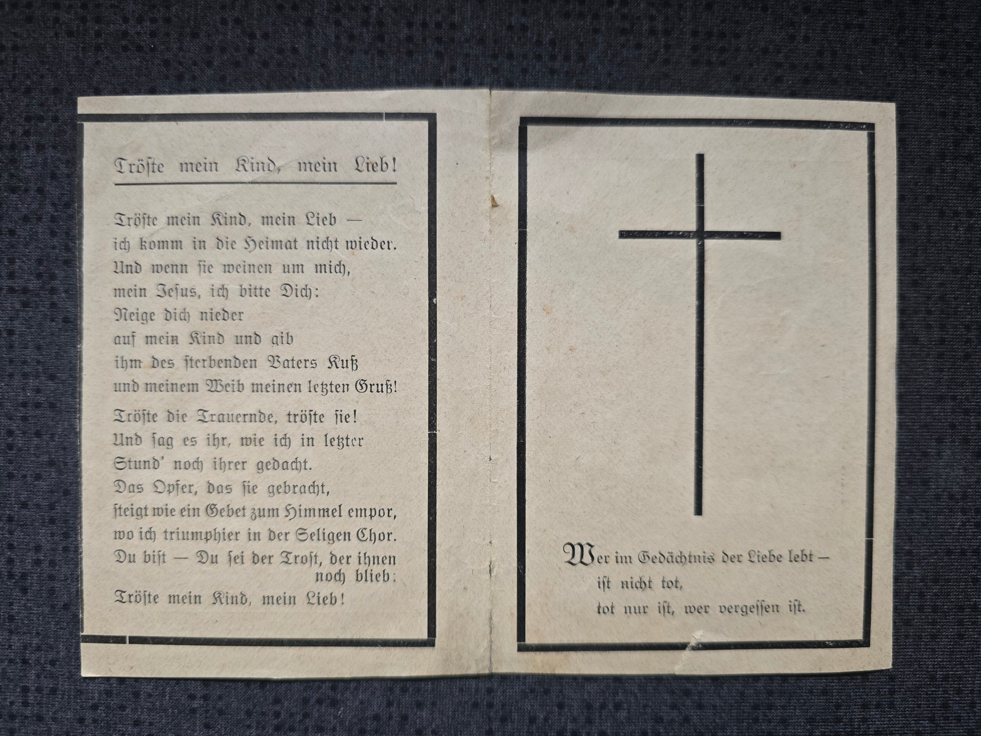 Sterbebild Oberfeldwebel Unholzing Pilot 11./KG-G. Z. B. V. 1 FFS Gold Absturz Mittelmeer Kreta Afrika