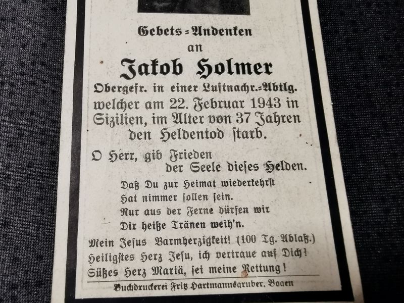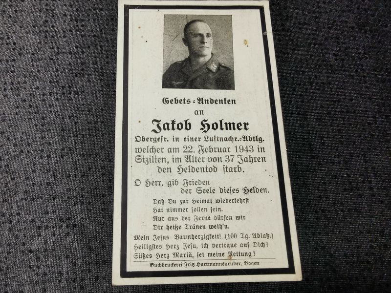 Sterbebild Obergefreiter Hacksberg 2. Komp. Luftnachrichten Abt. Palermo Motta St. Anastasia Sizilien Italien