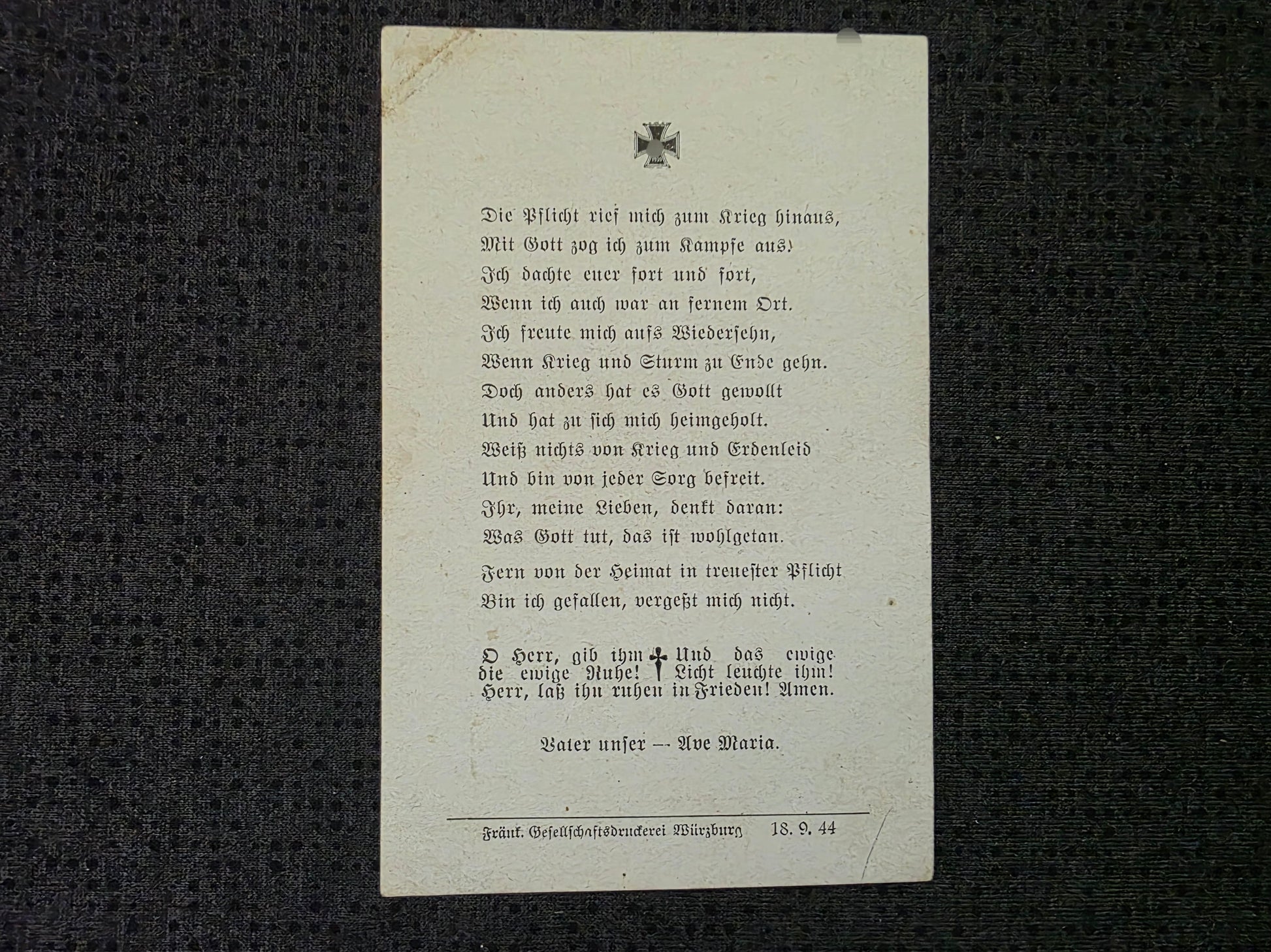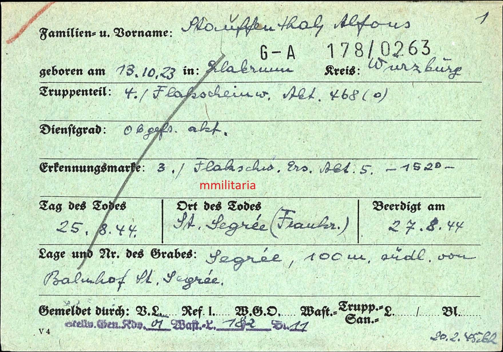 Sterbebild Obergefreiter Erlabrunn 4. Flakscheinwerfer Abt. 468 Westen Fort-de-Malmaison Frankreich