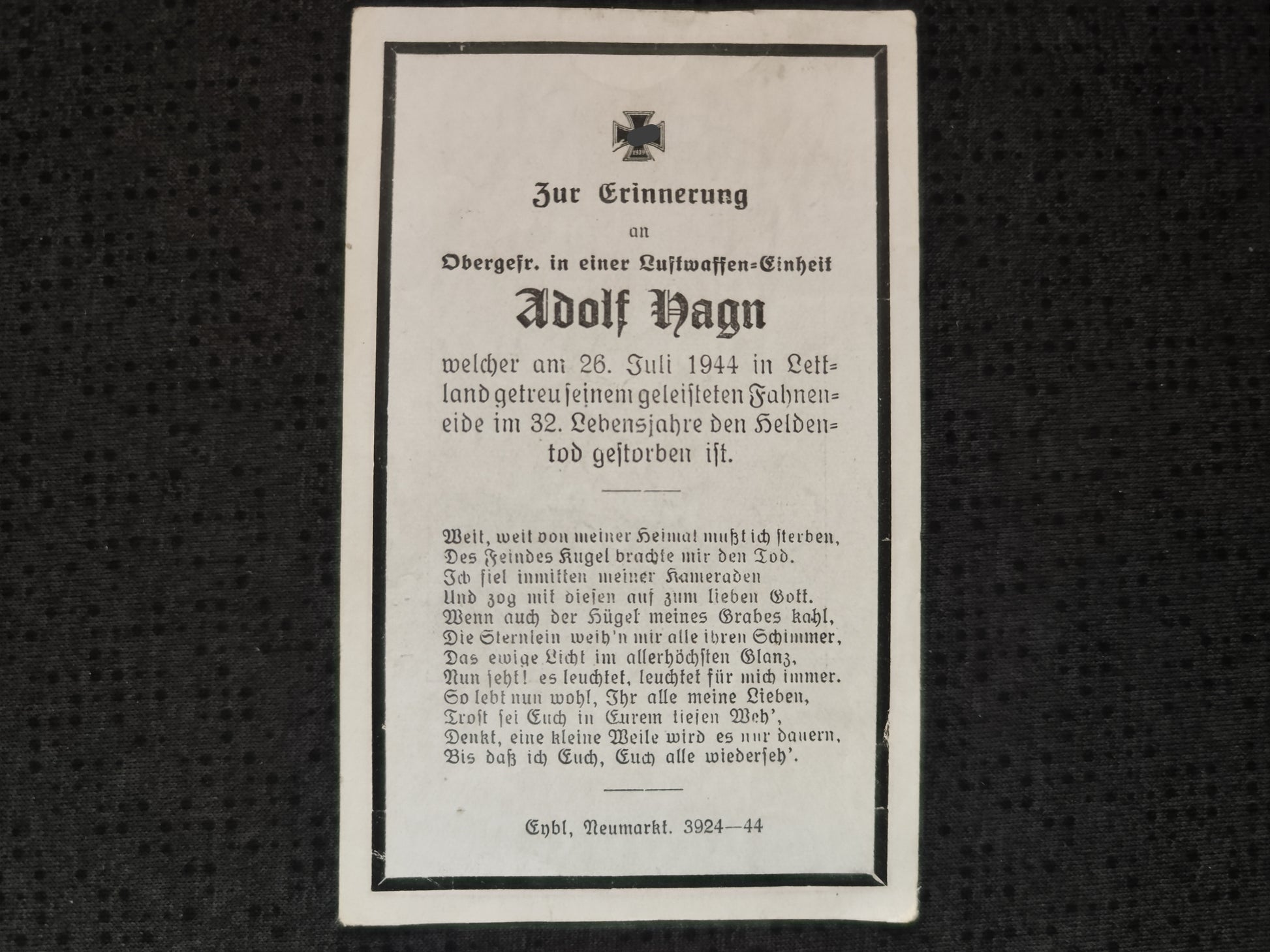 Sterbebild Obergefreiter Kallham Luftwaffen-Einheit Nizgallen Dünaburg Lettland