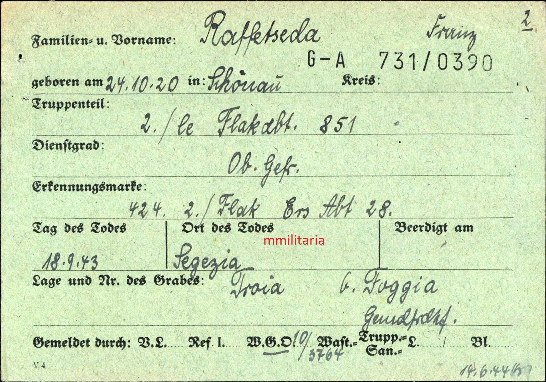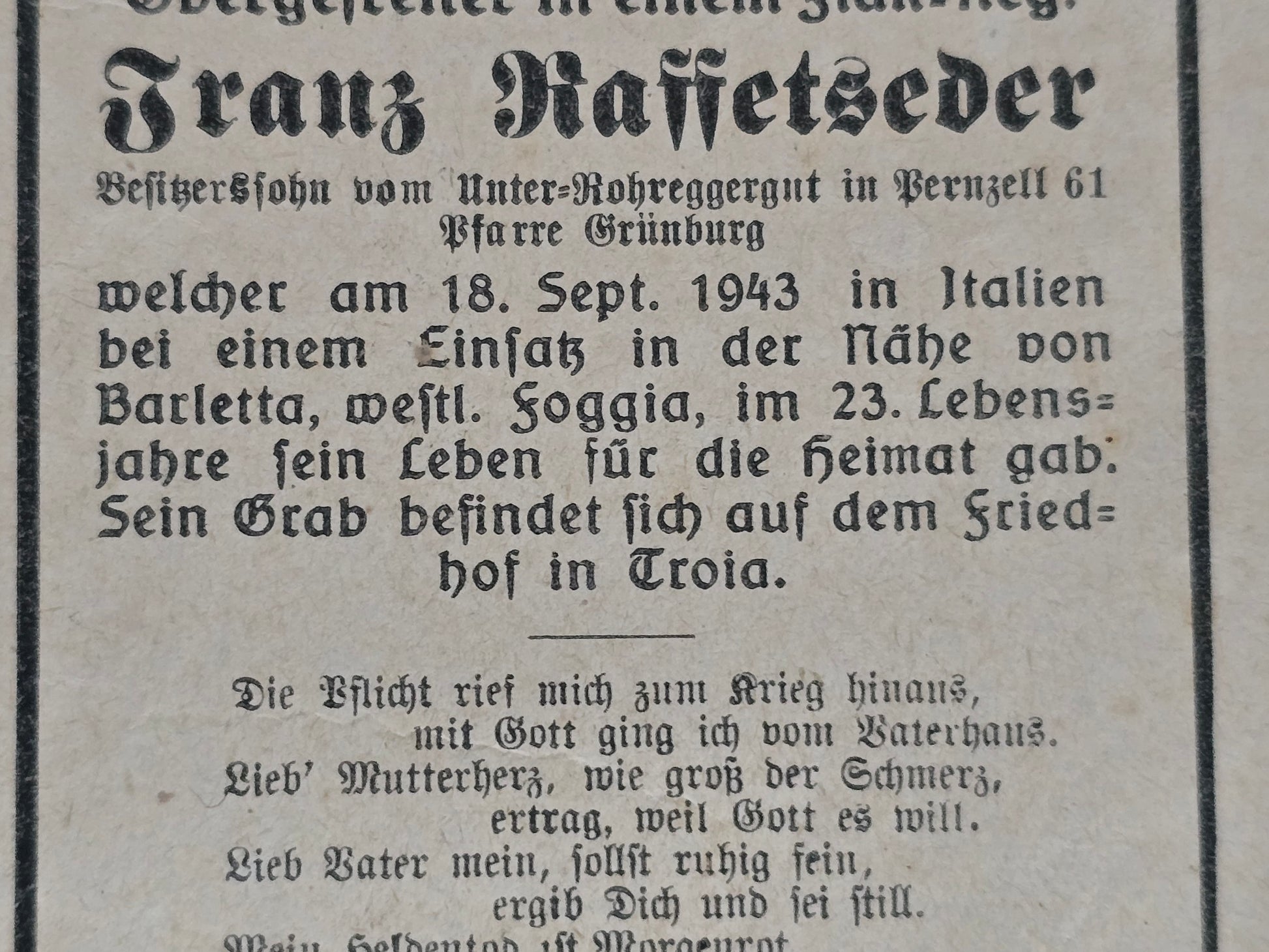 Gefallen am 18.09.1943 bei Barletta / Segezia (Italien)