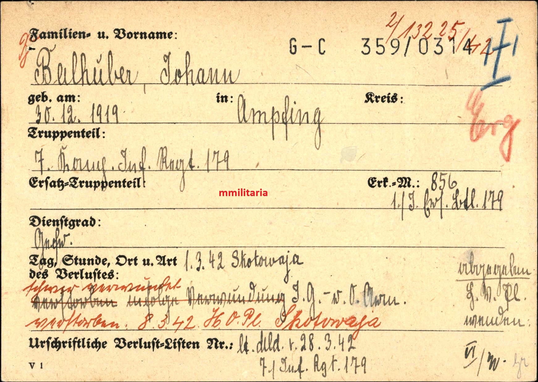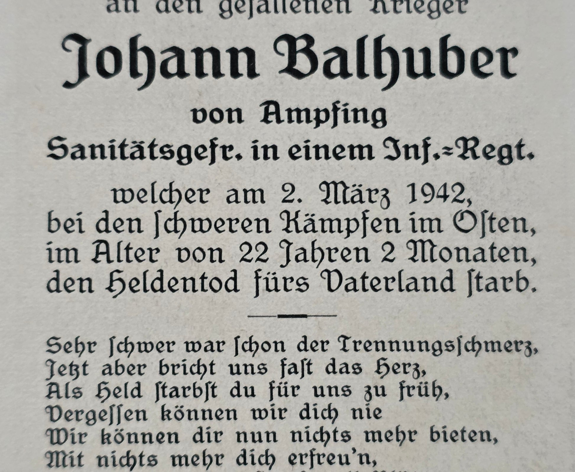 Sterbebild Sanitätsgefreiter Ampfing 7. Komp. Inf. Regt. 179 HVP Skotowaja Ukraine