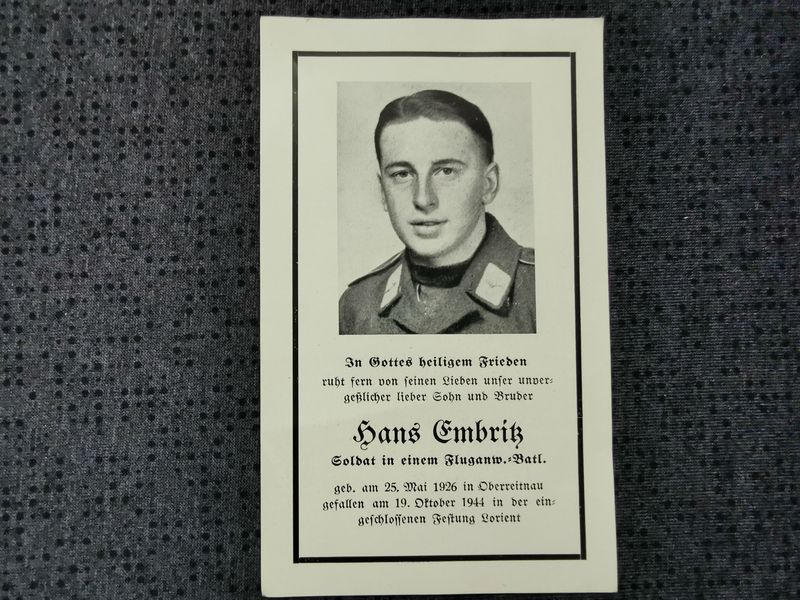 Gefallen am 19.10.1944 bei der eingeschlossenen Festung Lorient (Frankreich)