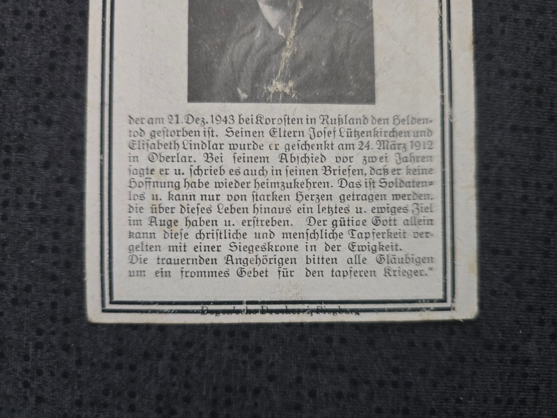 Sterbebild SS-Grenadier Oberlar LSAH Bahnhof Tscherepowez Russland