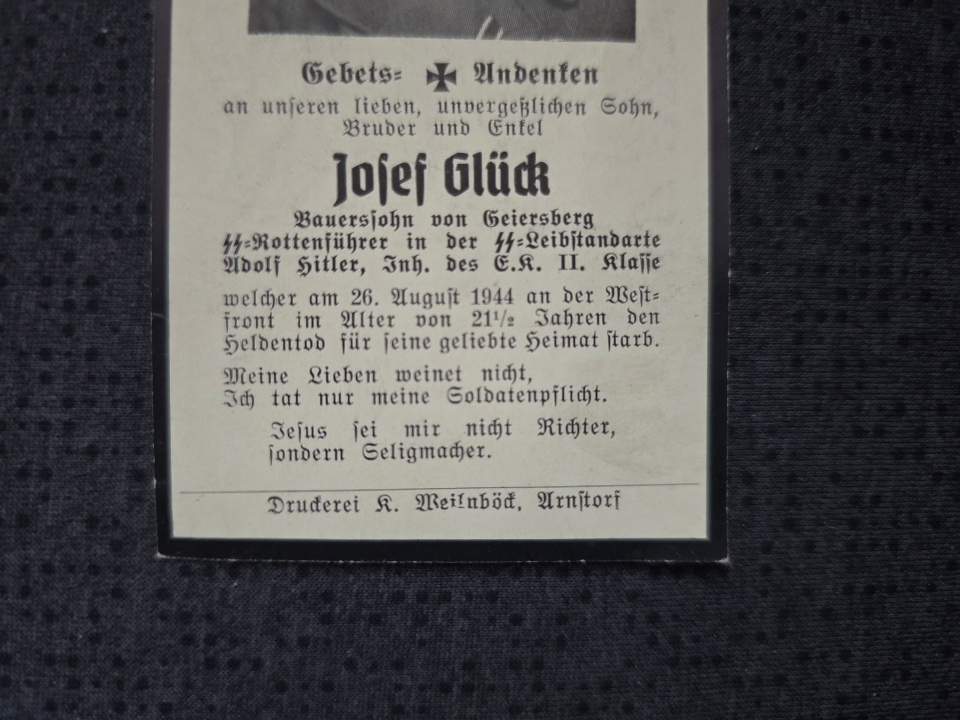 Sterbebild SS-Rottenführer Geiersberg der LSAH Westfront Lille Bourdon Frankreich