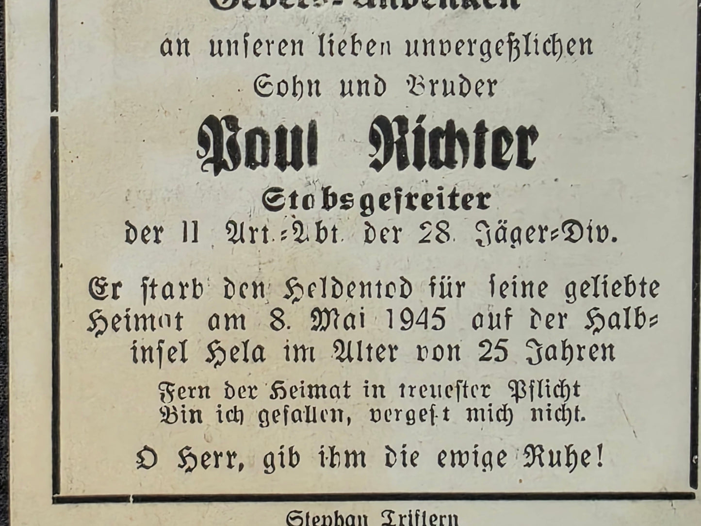 Sterbebild Stabsgefreiter Bischdorf II. Art. Abt. 28. Jäger-Division Letzter Tag 08.05.1945 Halbinsel Hela Polen