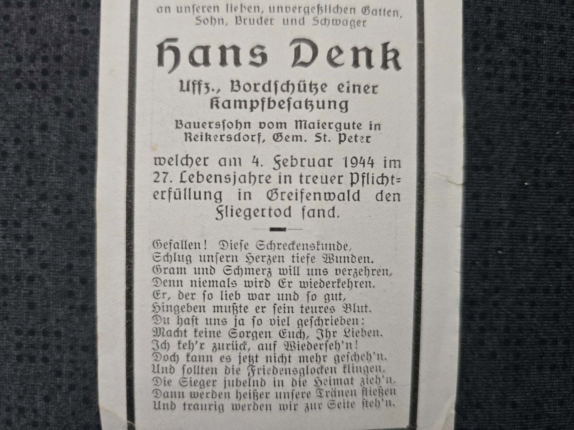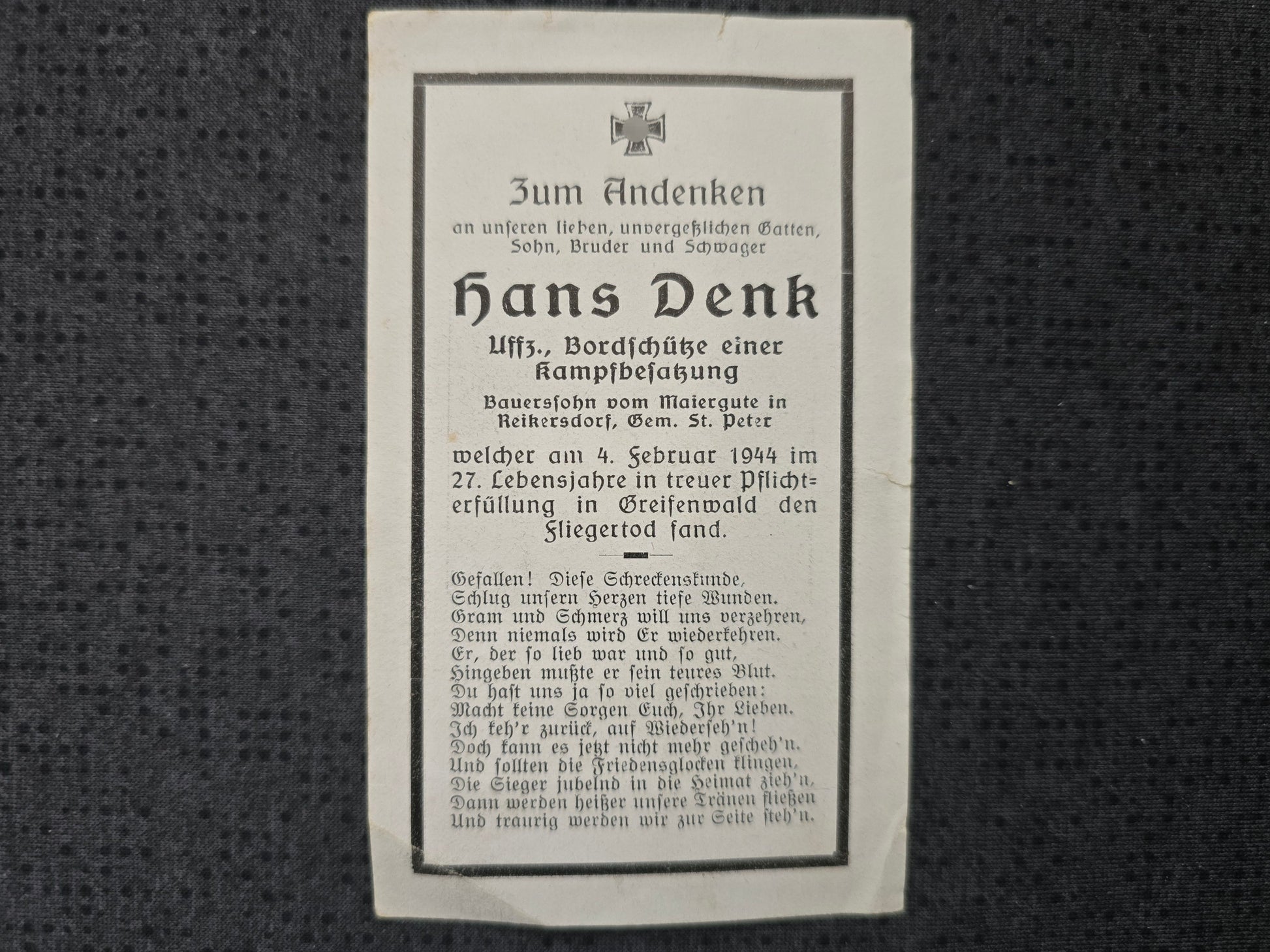 Sterbebild Unteroffizier Bordschütze Braunau 3. Kampfgeschwader 101 3/KG-101 Greifenwald Pommern