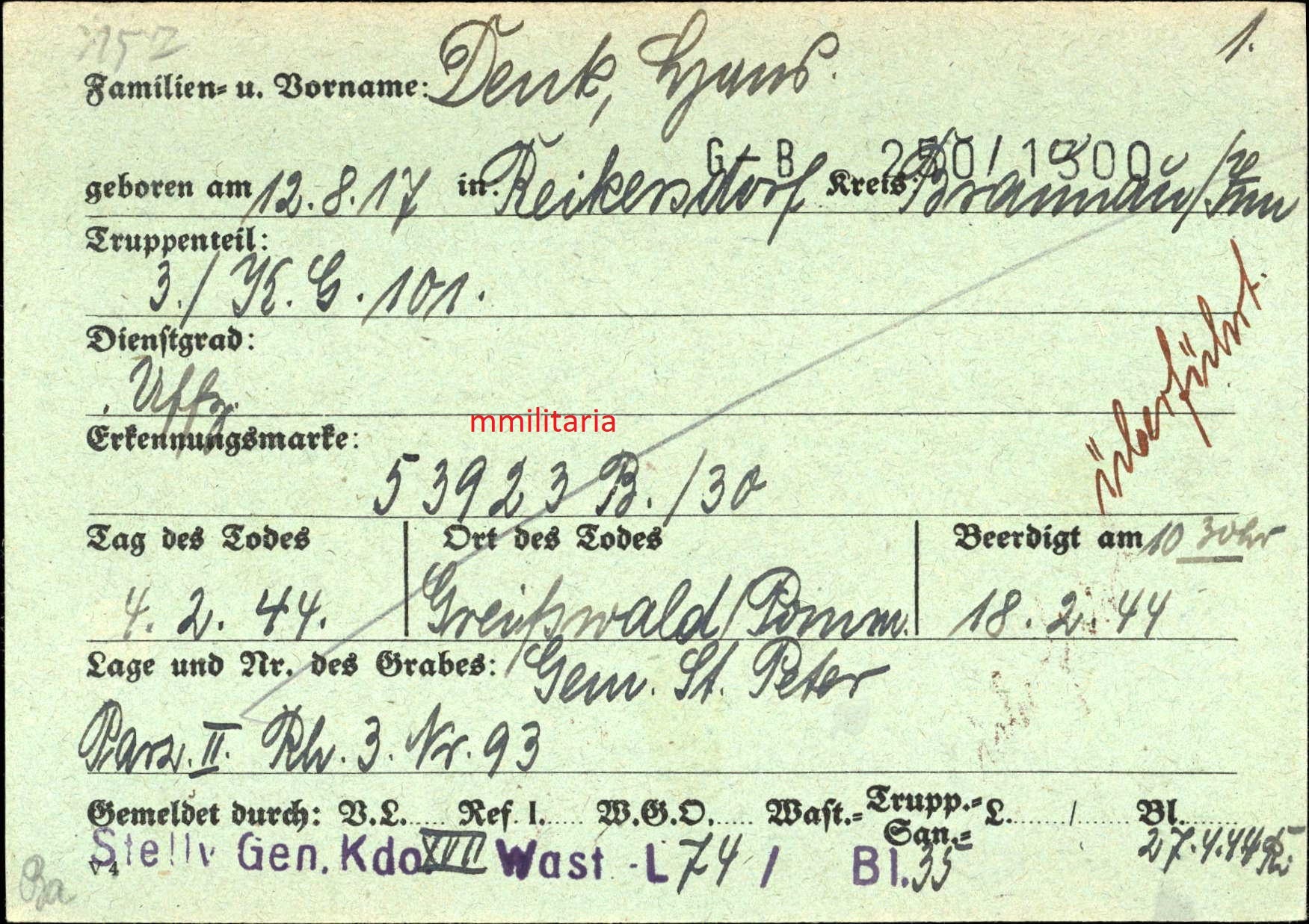 Gefallen am 04.02.1944 in Greifenwald / Pommern