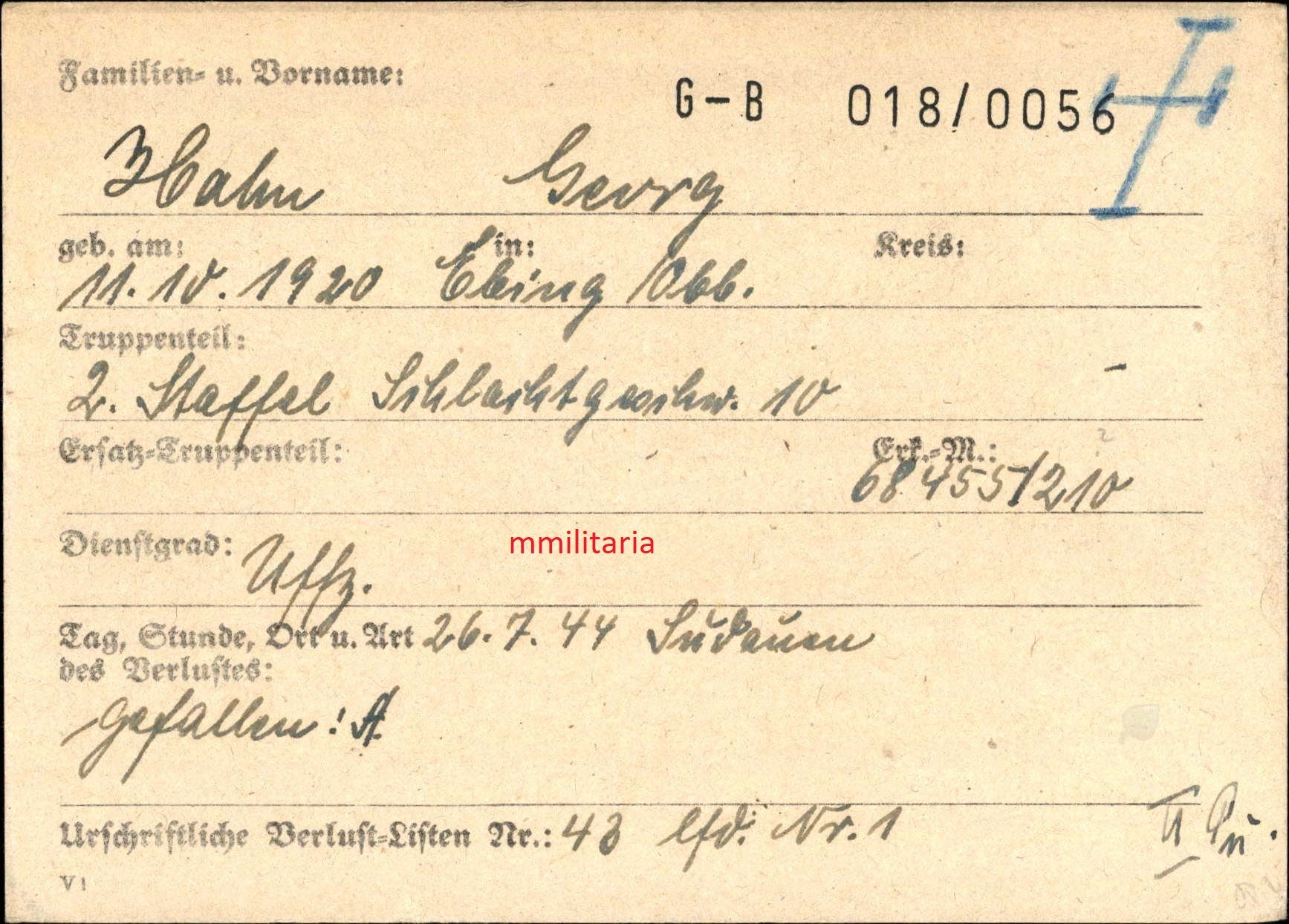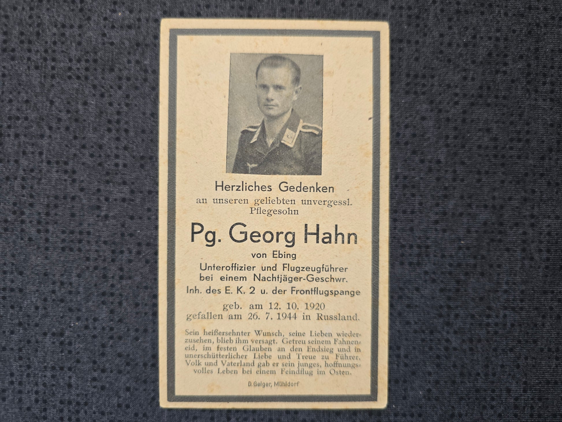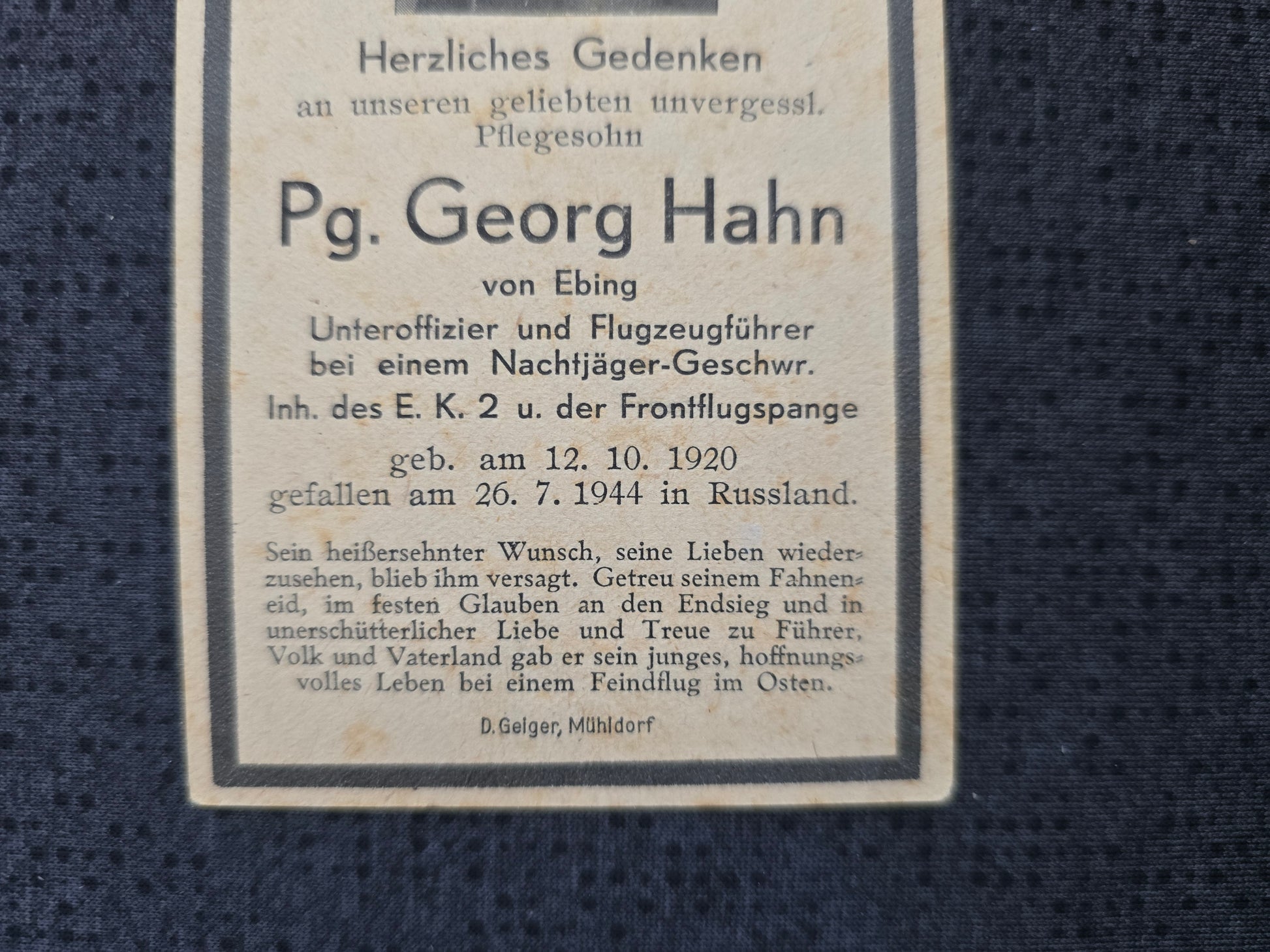 Sterbebild Unteroffizier Ebing 2. Staffel Schlachtgeschwader 10 2/NJG-10 FFS Sudauen Bartosze Polen