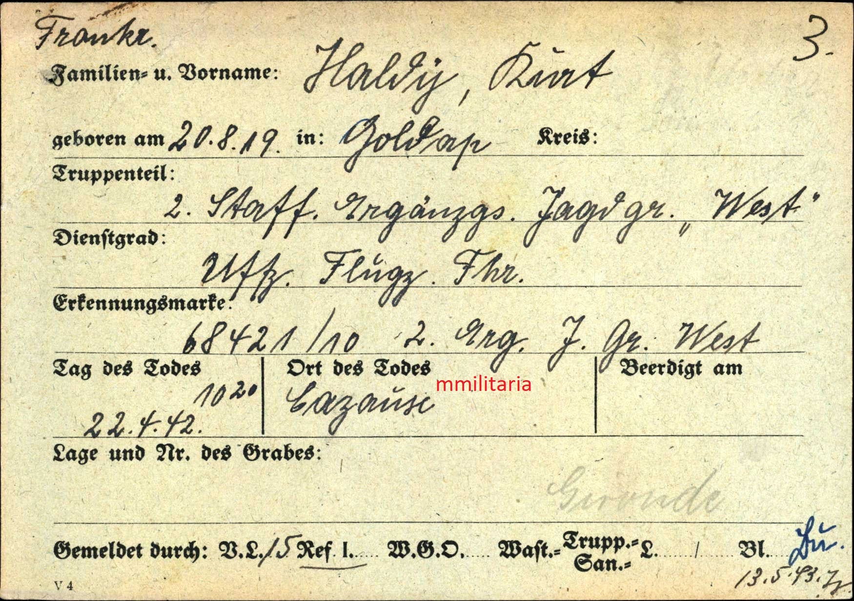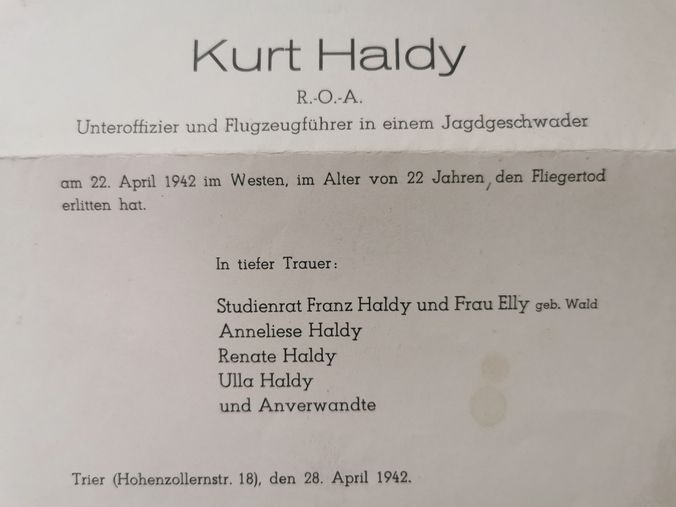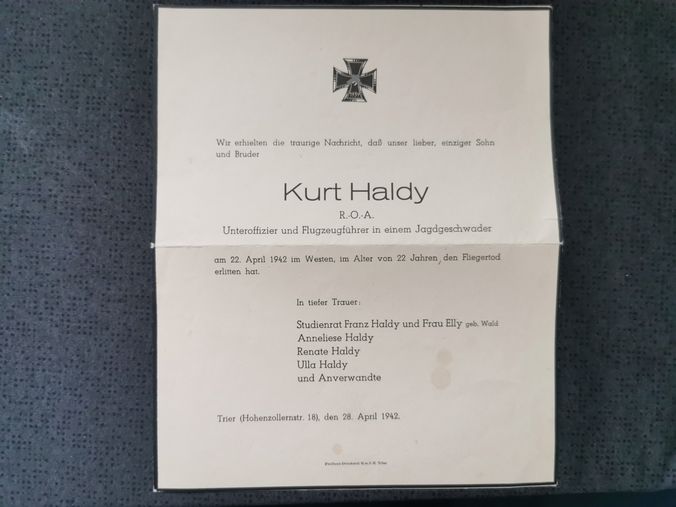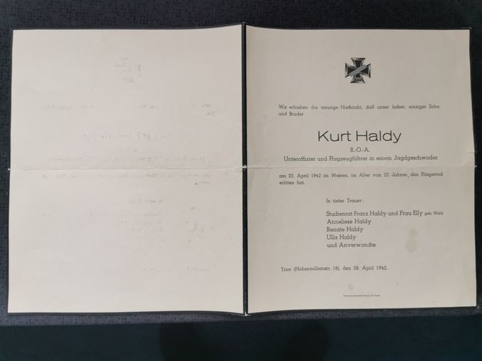 Sterbebild Unteroffizier Flugzeugführer 2. Ergänzungs-Jagdgeschwader "West" Feindflug See Westen