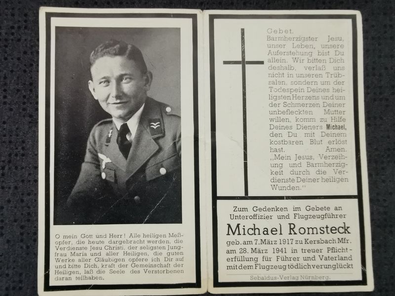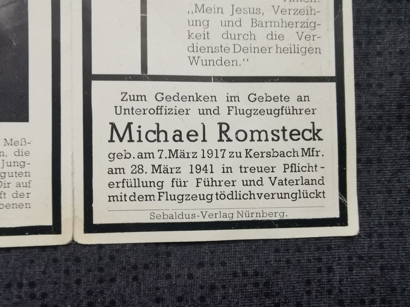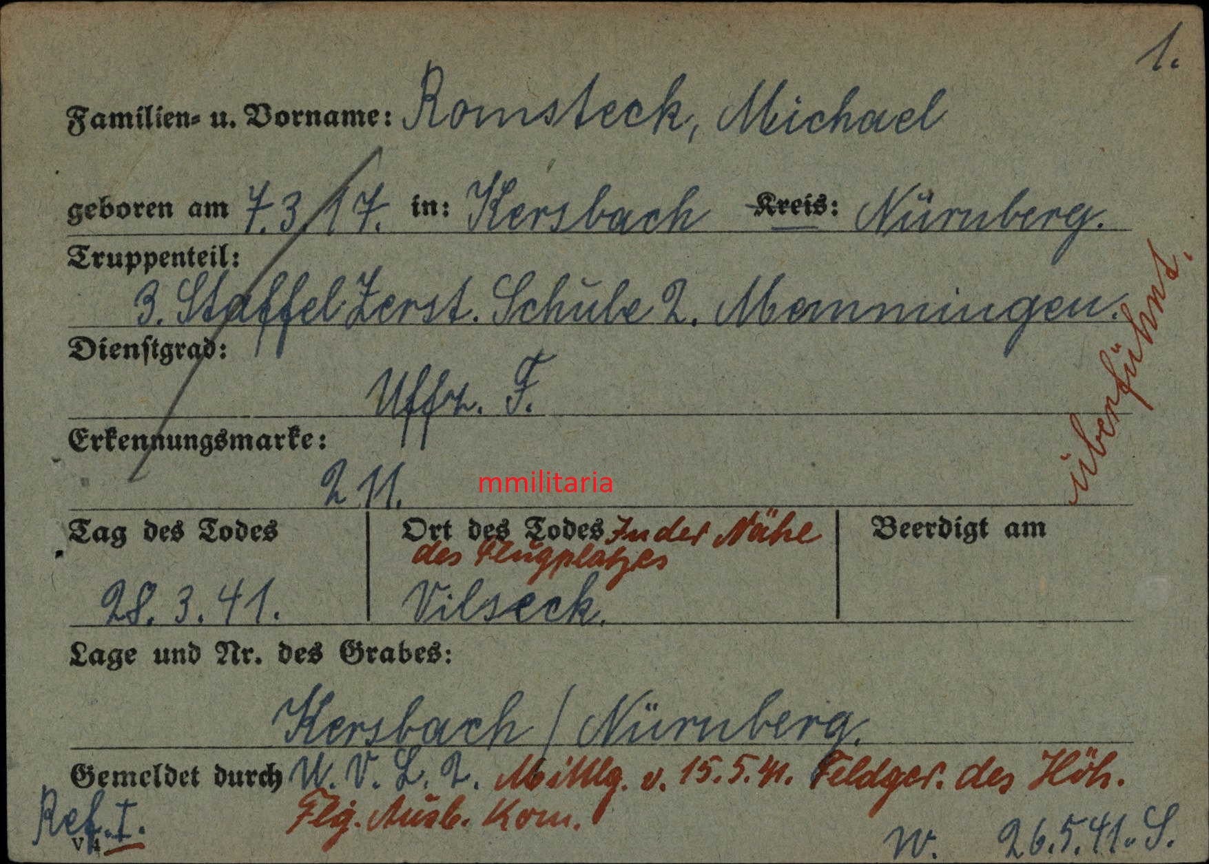 Sterbebild Unteroffizier Flugzeugführer 3. Zerstörerschule 2 Memmingen Flugplatz Vilseck Deutschland