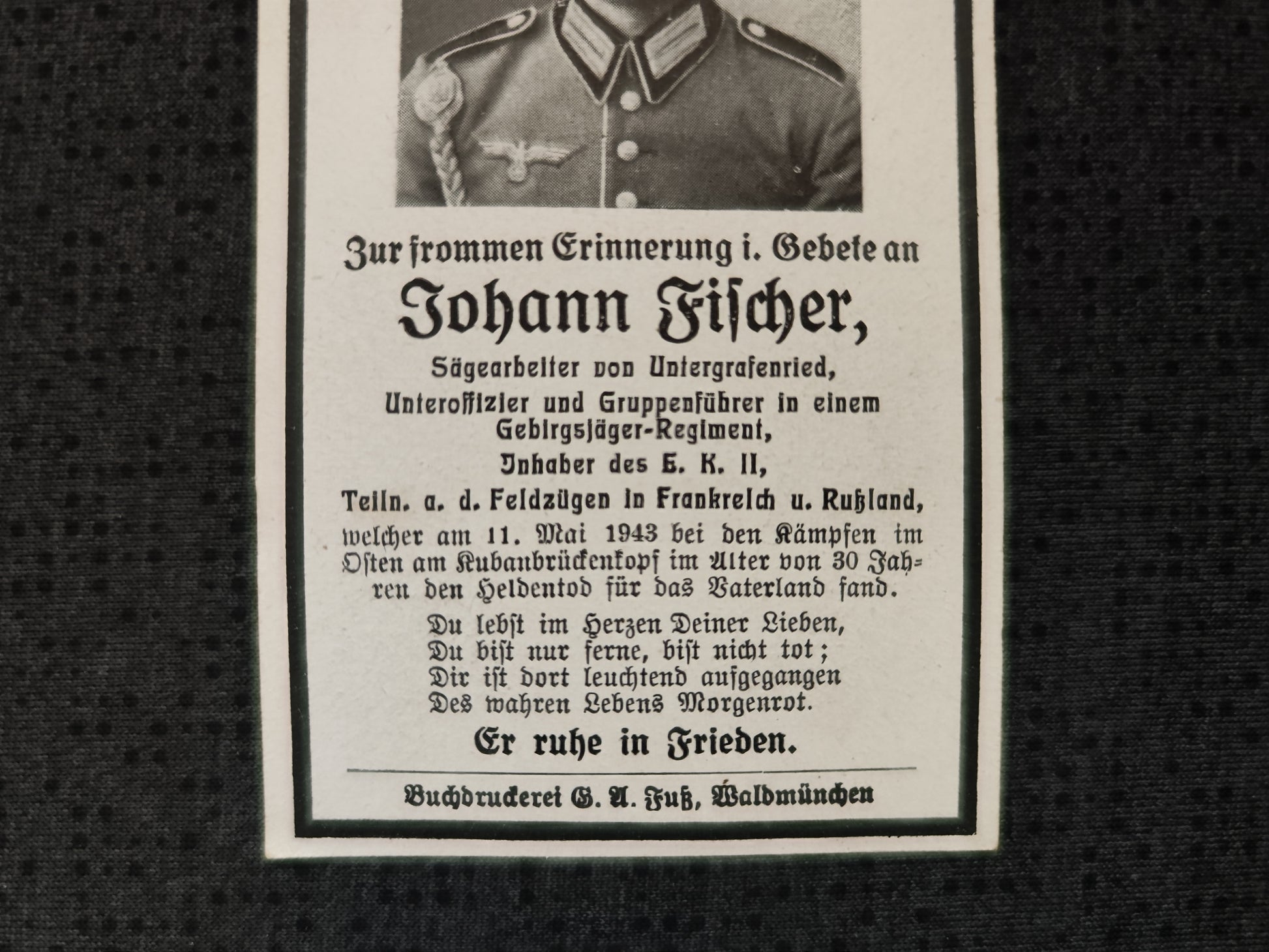 Sterbebild Unteroffizier Gruppenführer Gebirgsjäger Regt. EK II Kubanbrückenkopf Russland