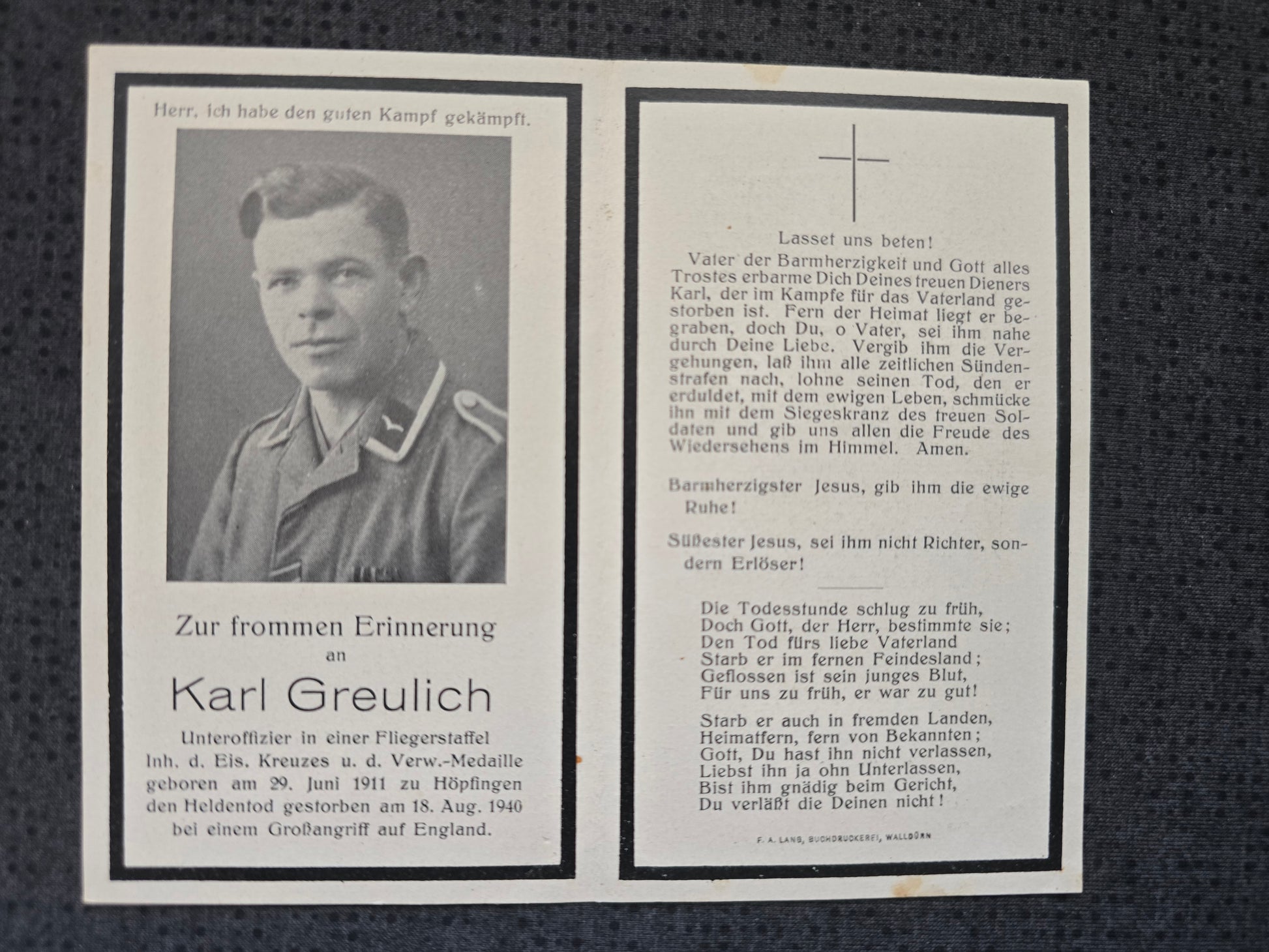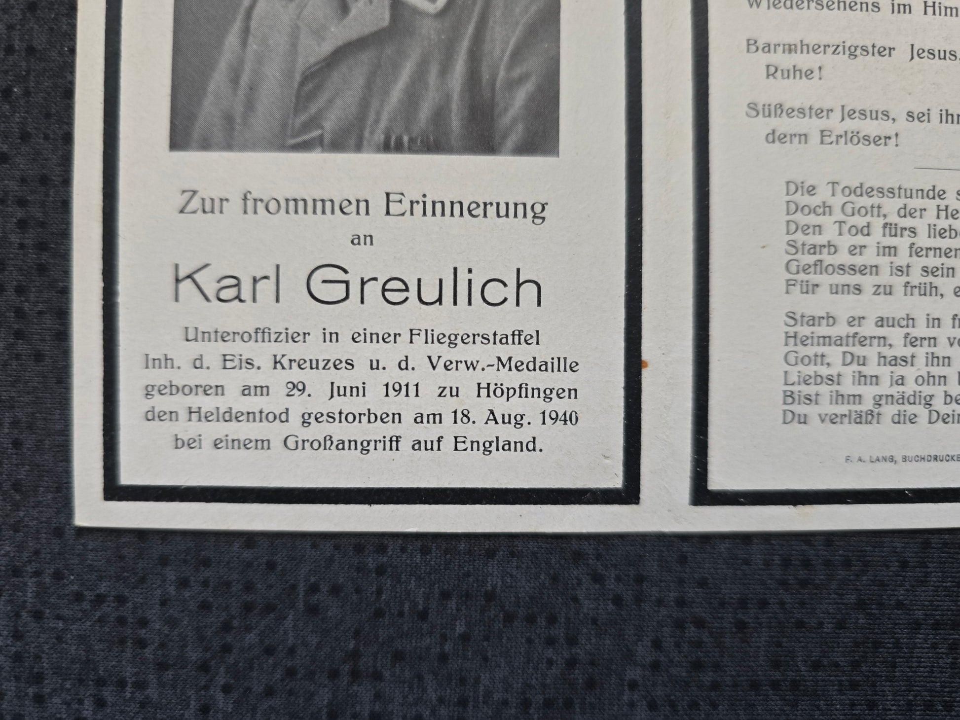 Sterbebild Unteroffizier Höpfingen 9./KG-76 Dornier Do-17 Luftschlacht Kenley England