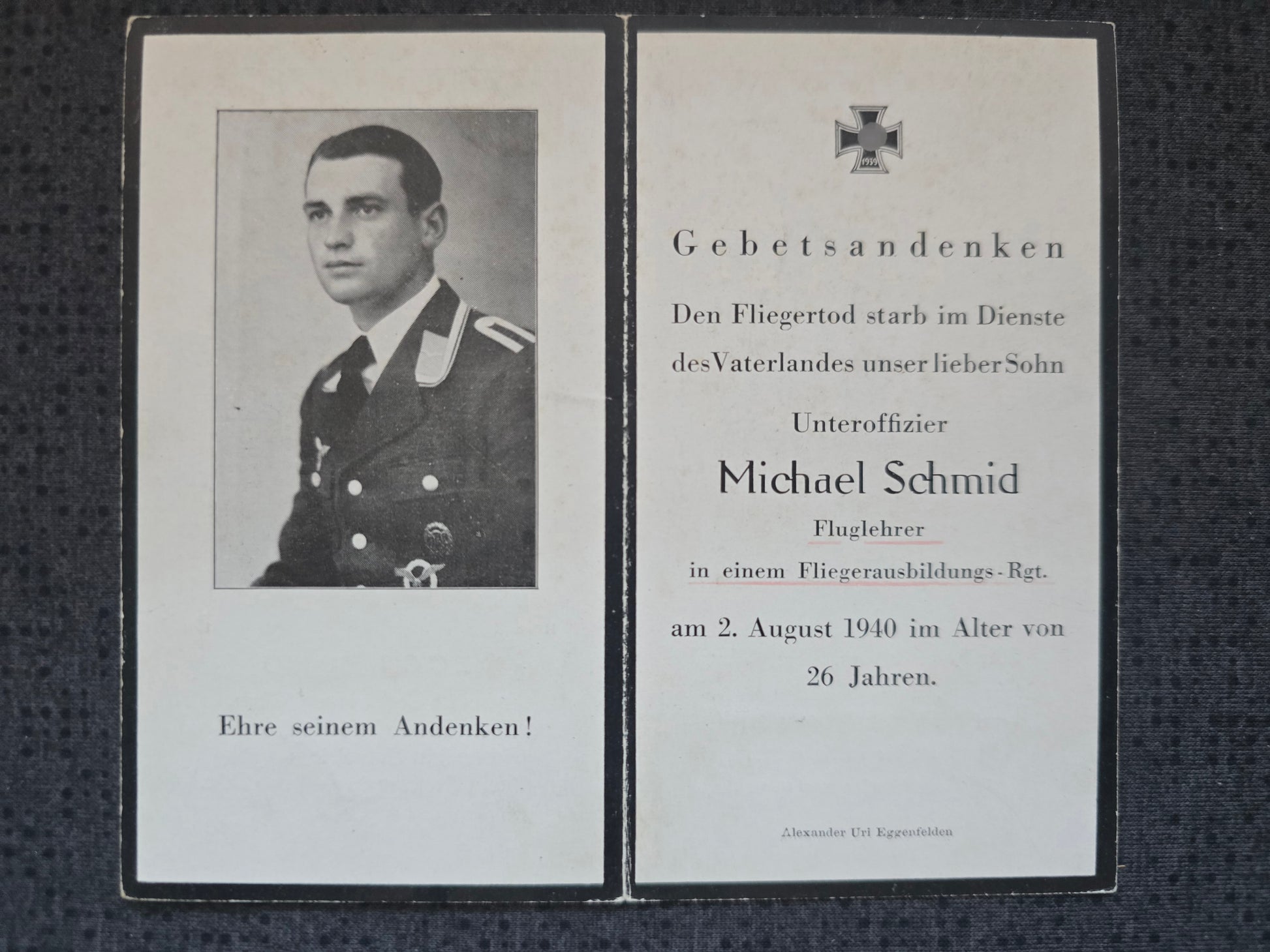 Sterbebild Unteroffizier Kirchberg 8. Komp. Flieger-Ausb. Regt. 52 Gernrode / Harz