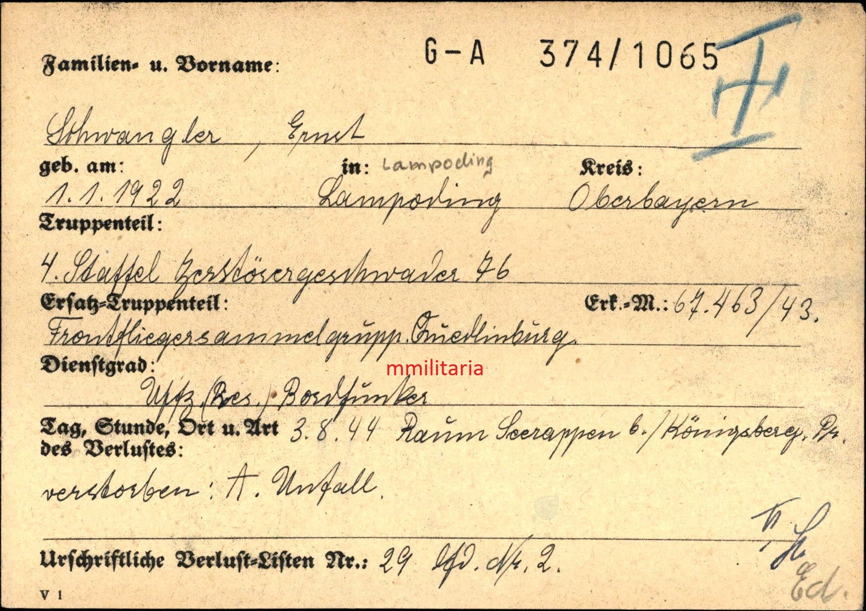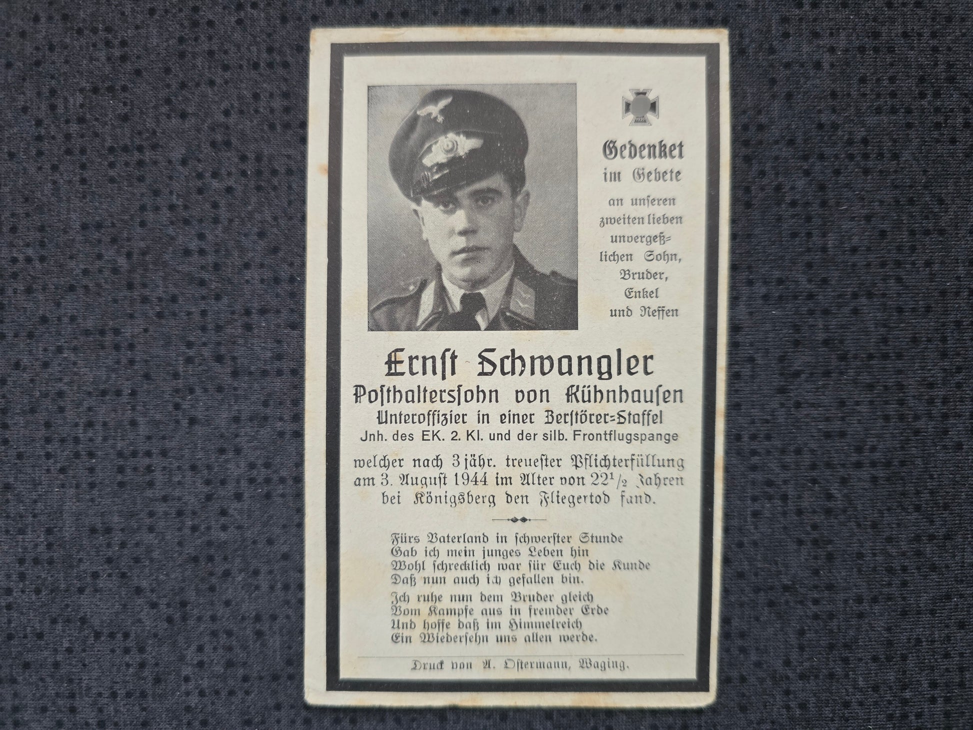 Sterbebild Unteroffizier Lampolding Bordfunker 4./ZG-76 FFS Silber Seerappen Königsberg Russland