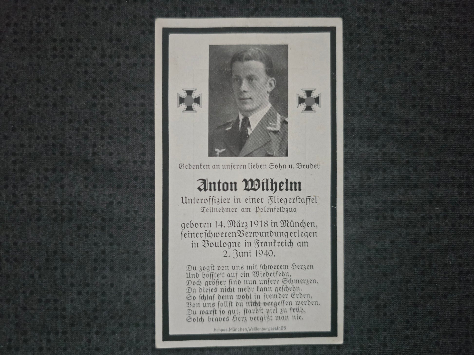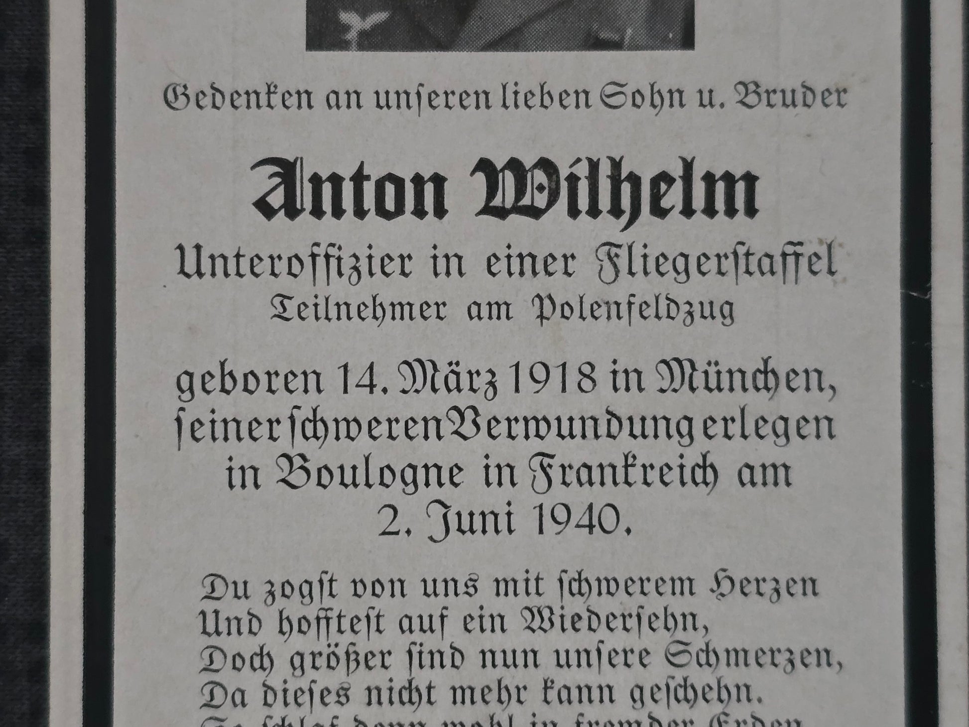 Sterbebild Unteroffizier München Fliegerstaffel Boulogne Frankreich