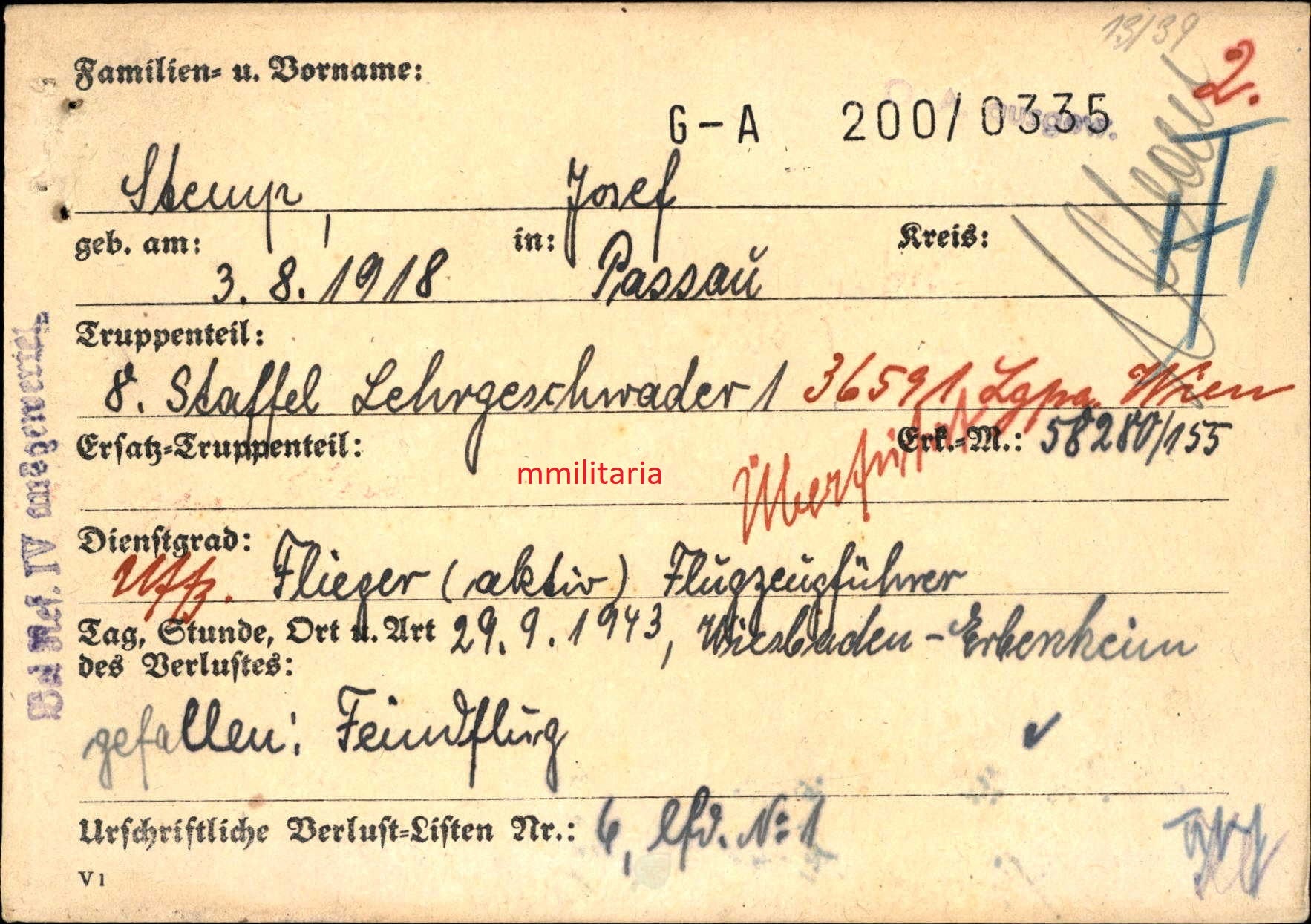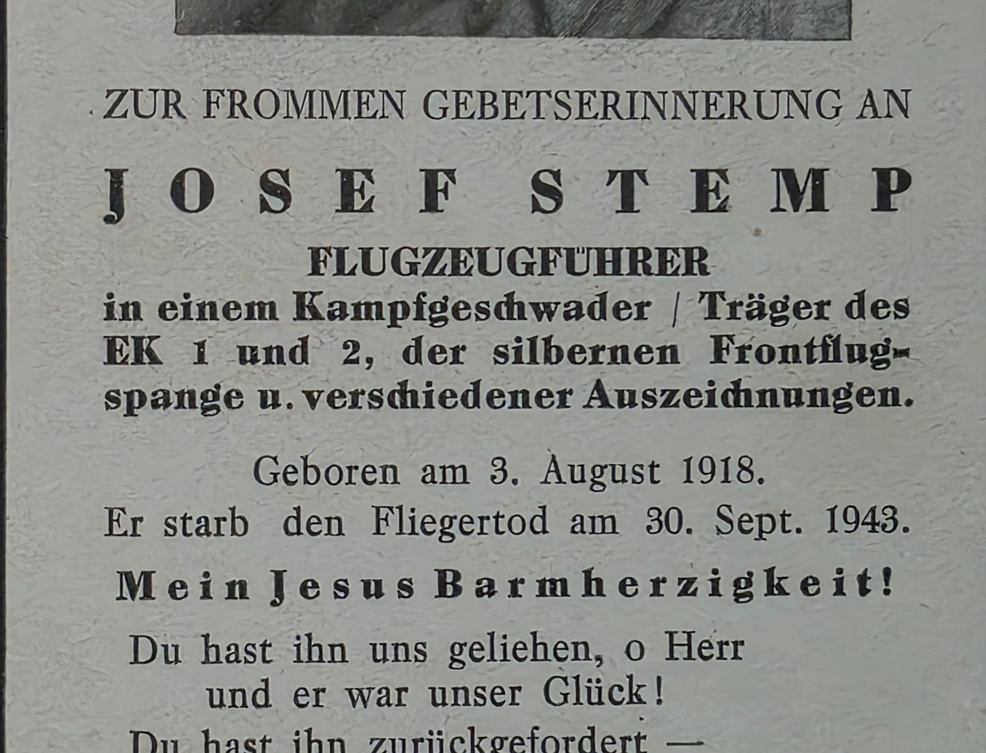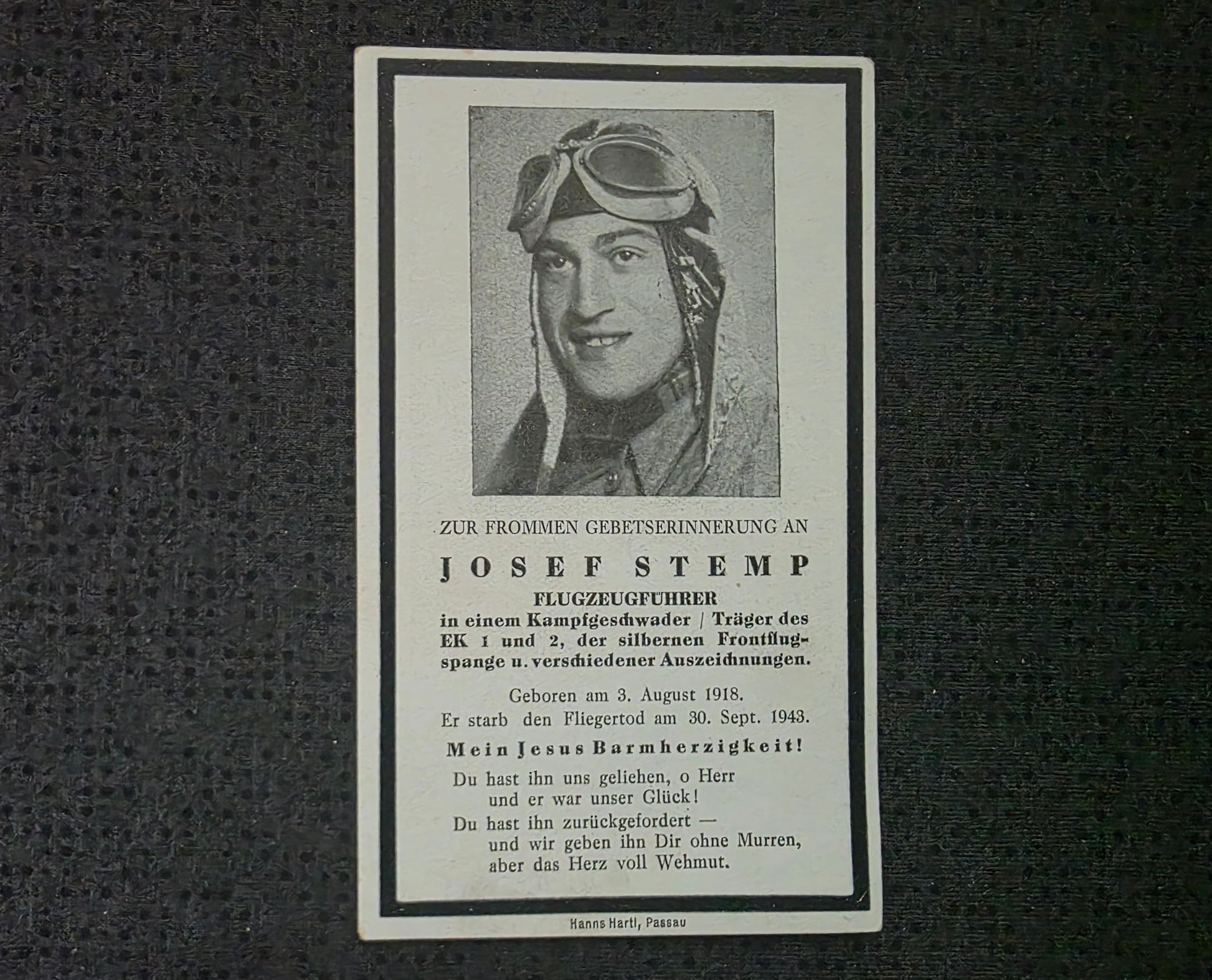 Sterbebild Unteroffizier Passau Pilot 8./LG-1 FFS silber Wiesbaden-Erbenheim