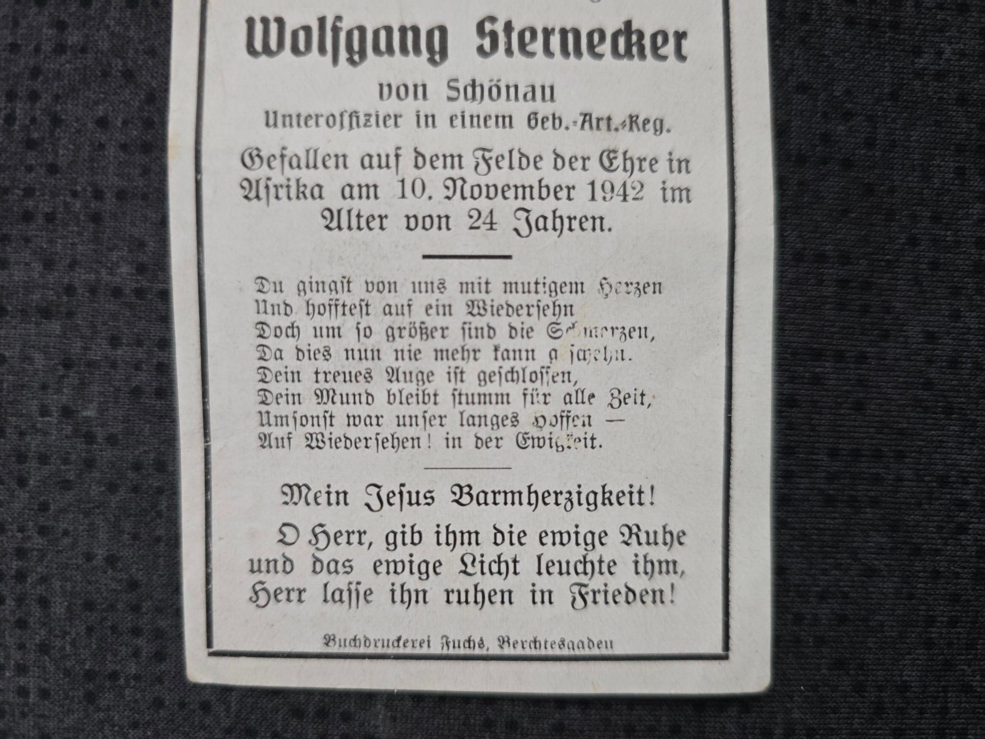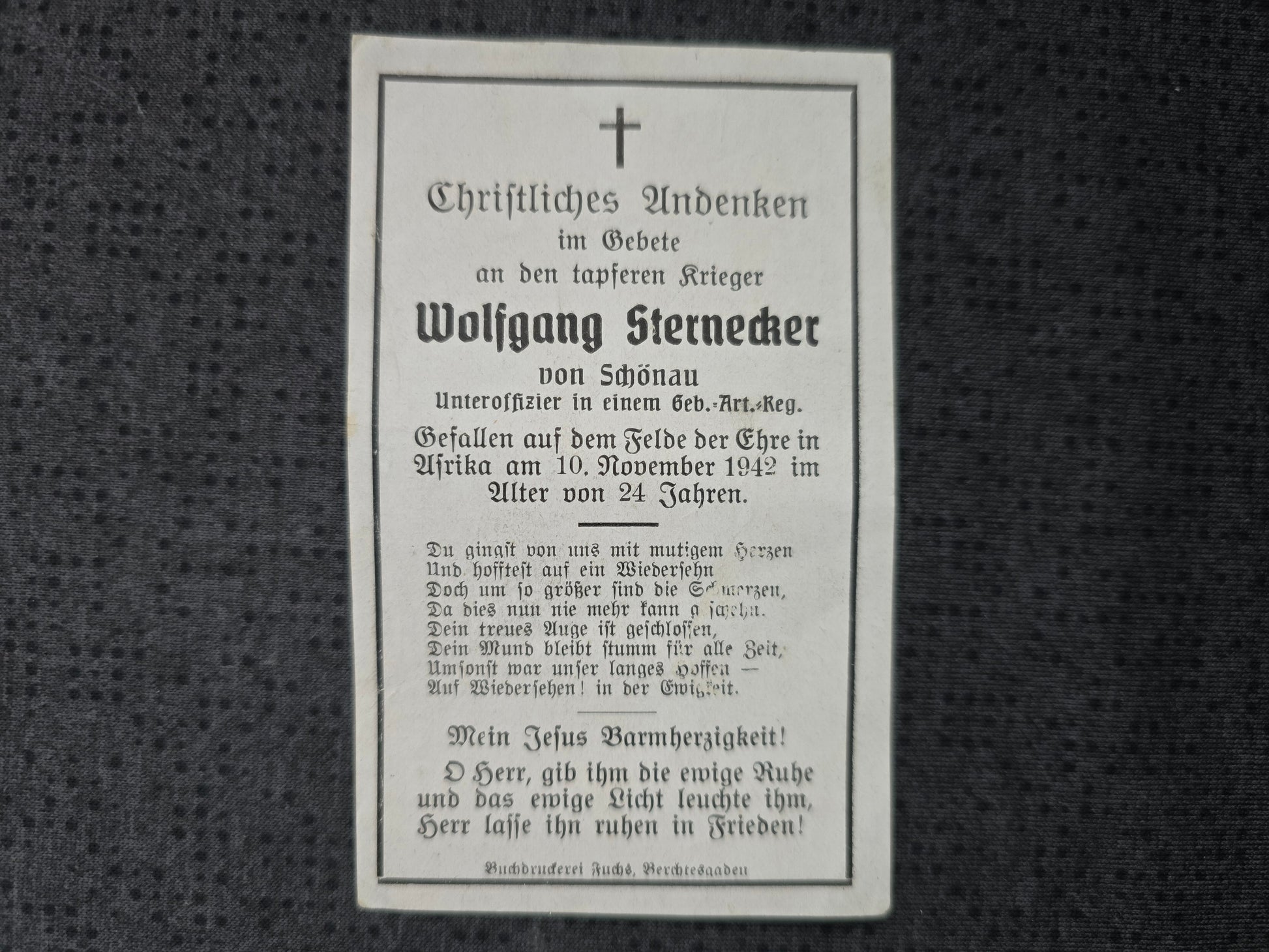 Sterbebild Unteroffizier Schönau Stabs Batterie Geb. Art. Regt. 220 Capuzzo Tobruk Lybien Afrika