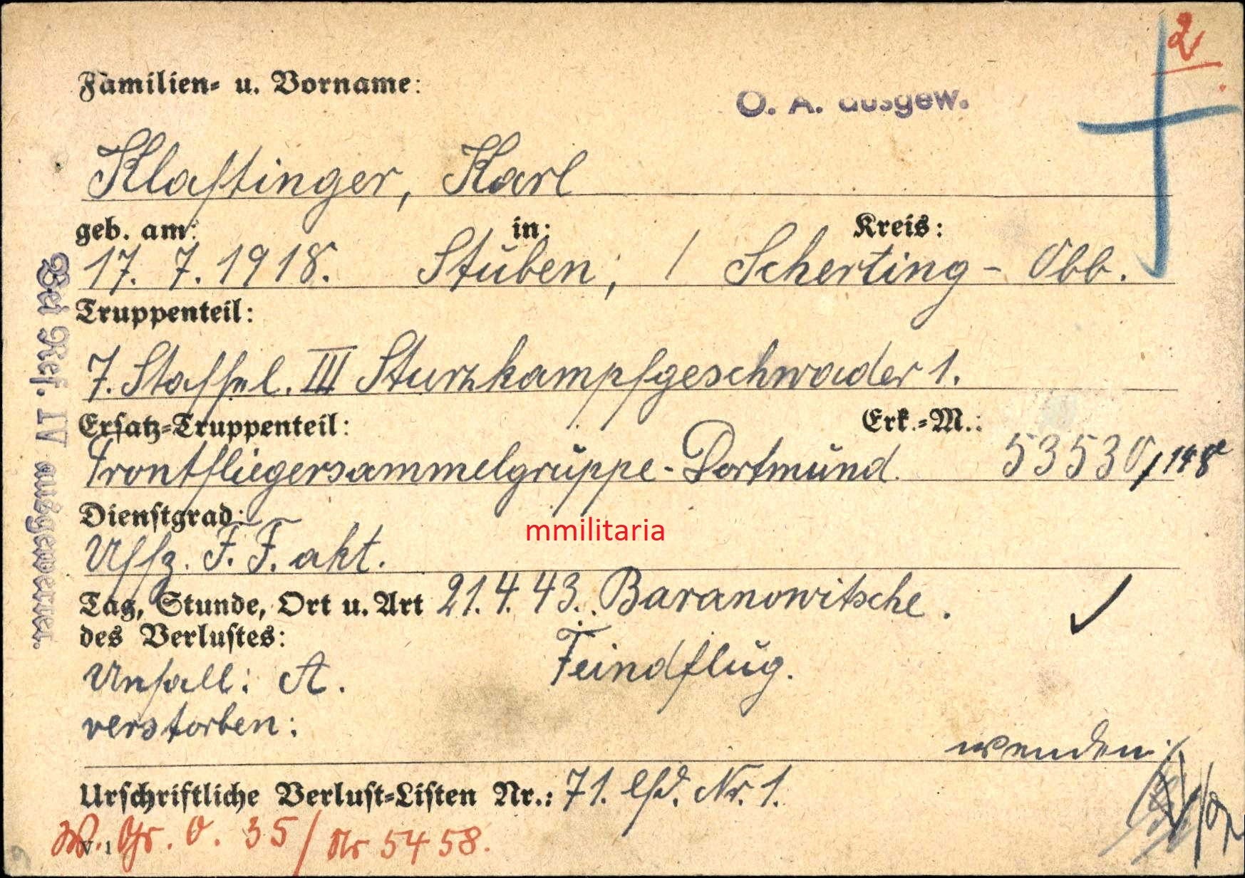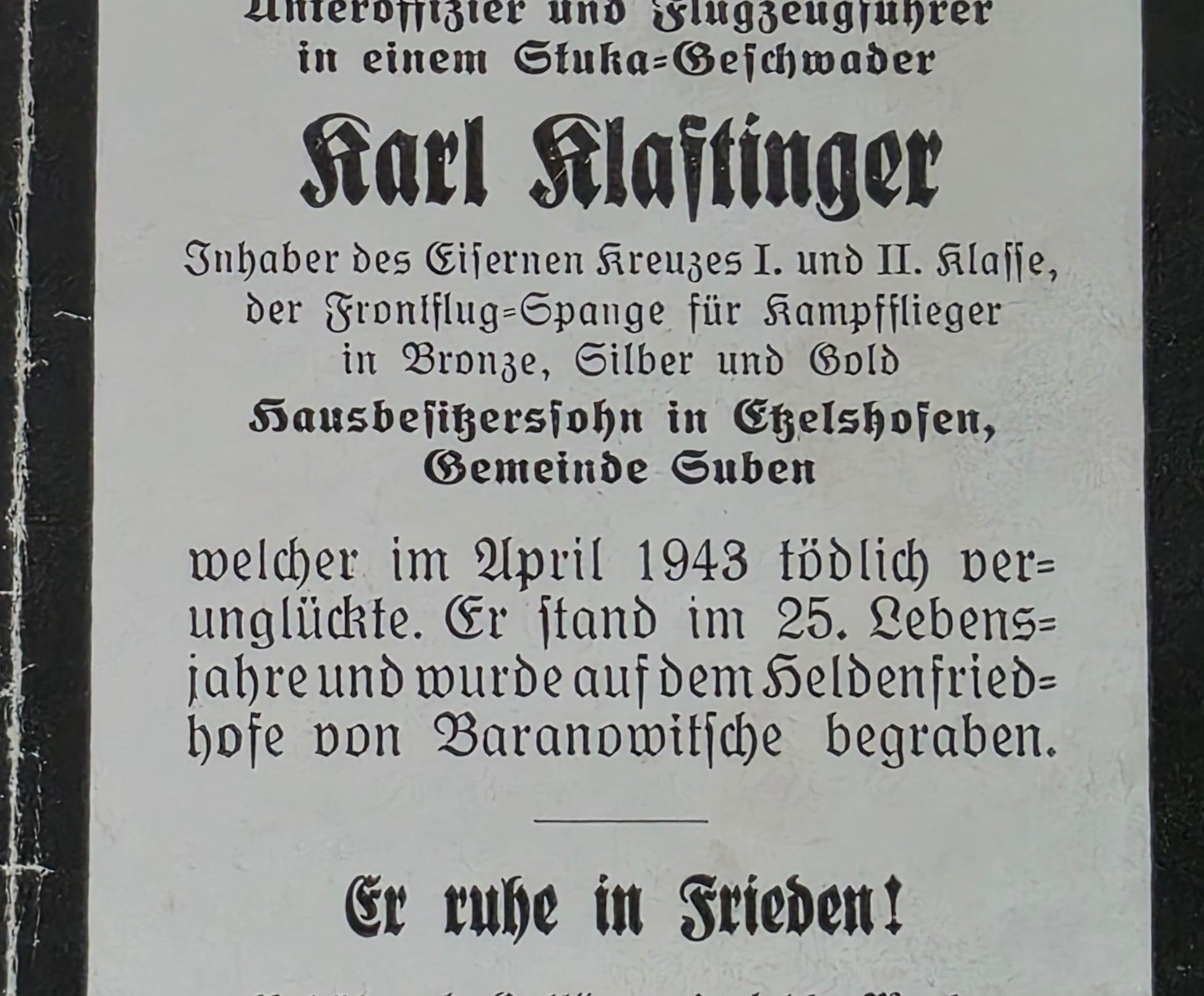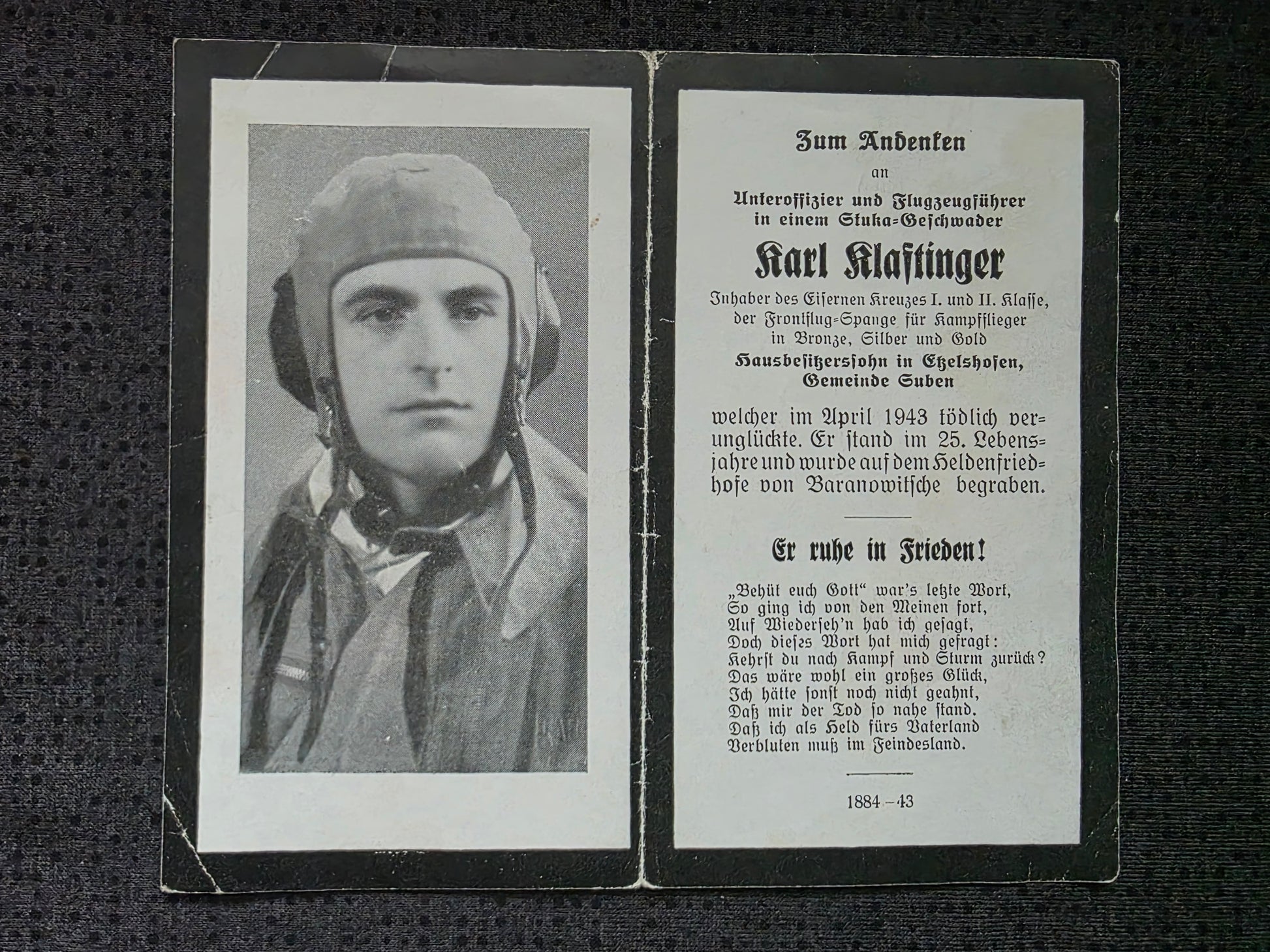 Sterbebild Unteroffizier Stuben 7./III. SG-1 Pilot Stukageschwader FFS Gold Baranowitsche Weissrussland