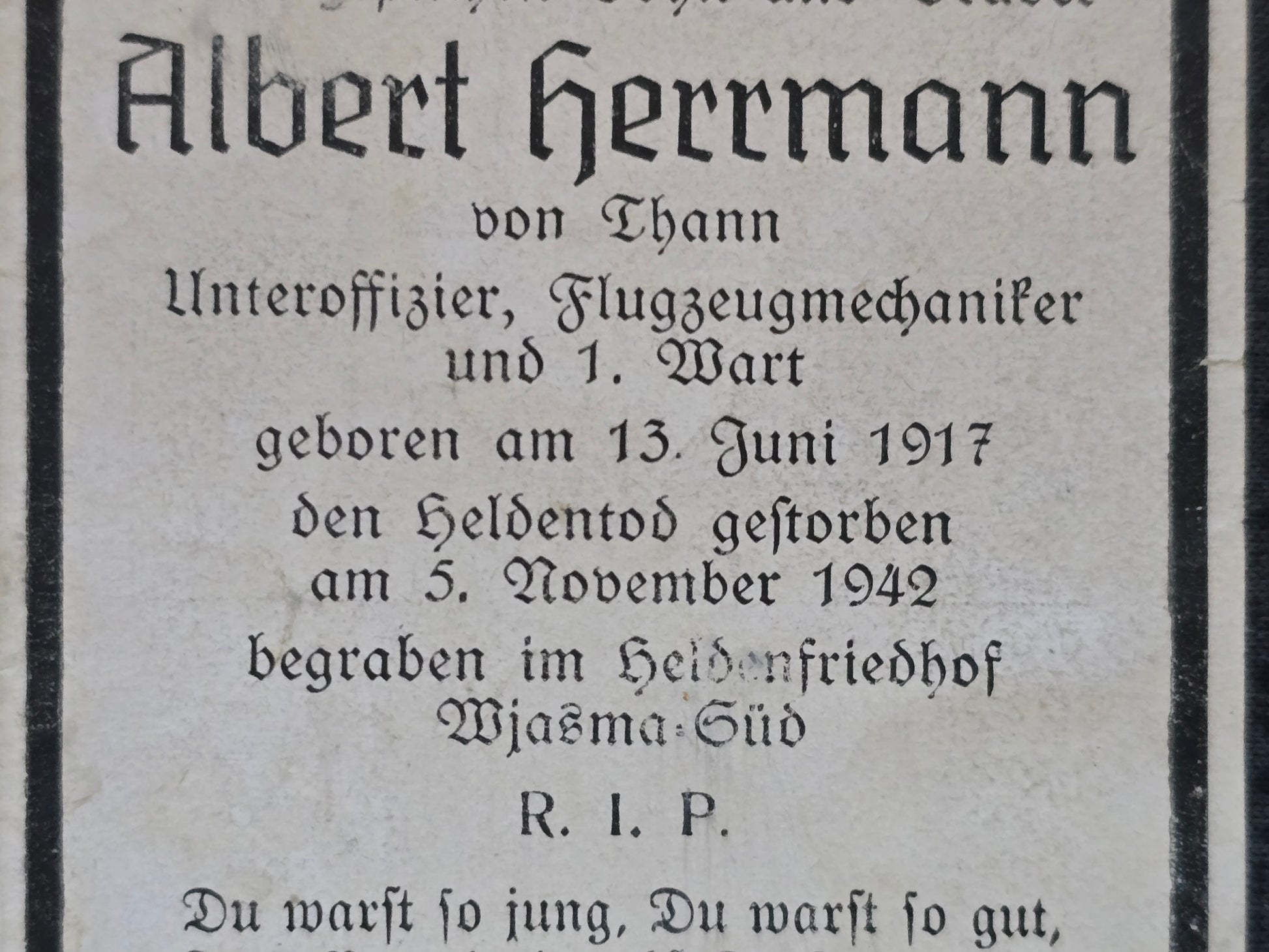Sterbebild Unteroffizier Thann Mechaniker 7./ Stukageschwader 2 "Immelmann" Wjasma Russland