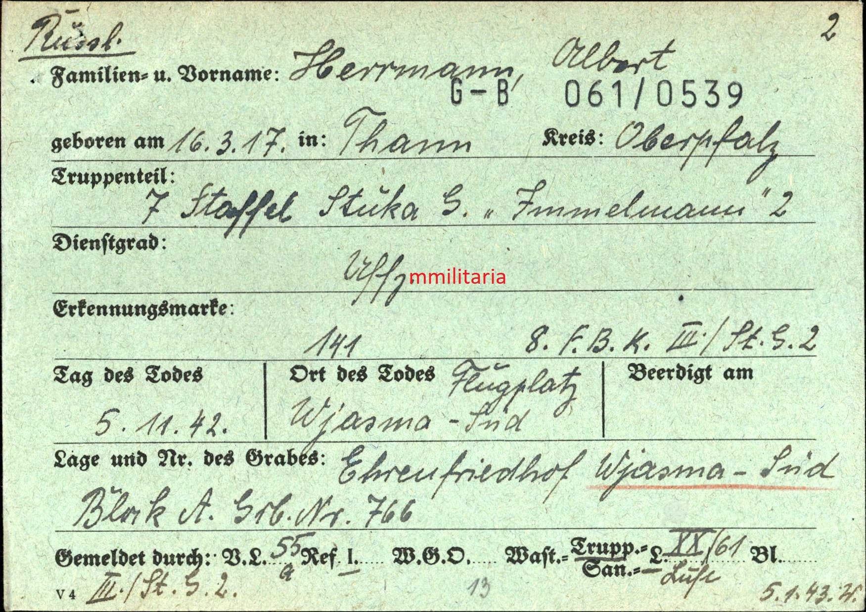 Gefallen am 05.11.1942 in Wjasma (Russland)