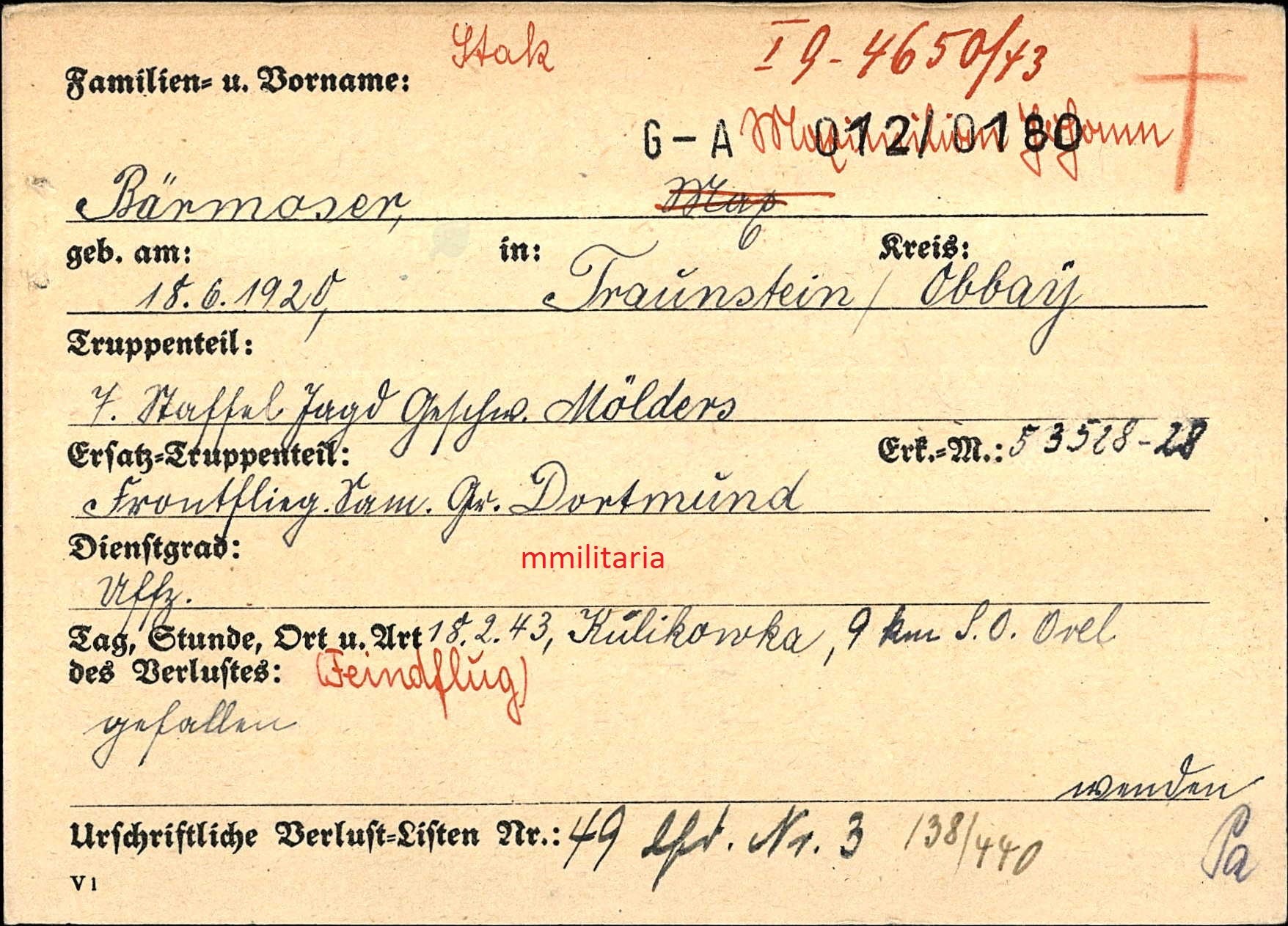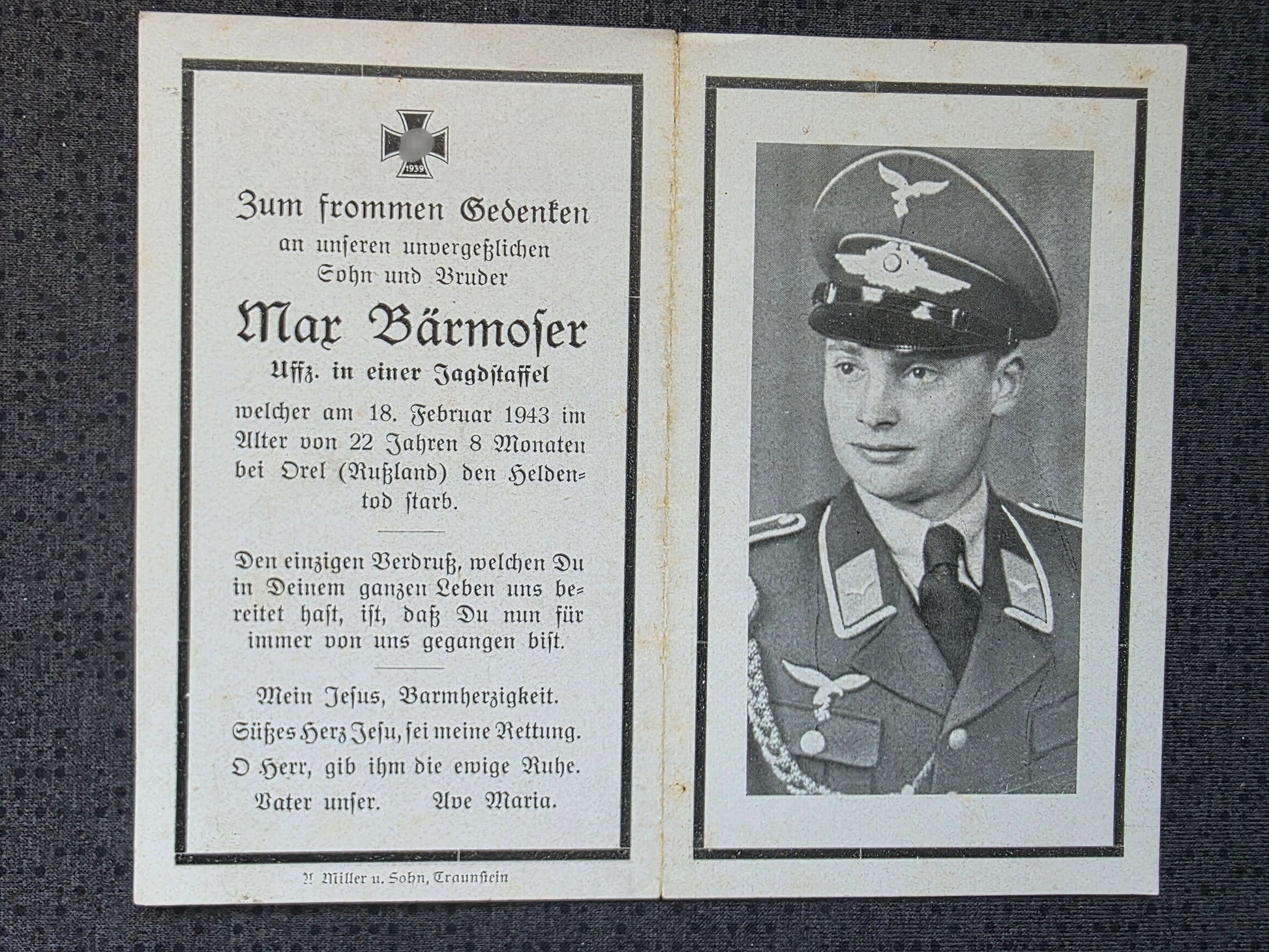 Sterbebild Unteroffizier Traunstein 7./JG-51 Jagdgeschwader "Mölders" 7 Staffel Kulikowka Russland