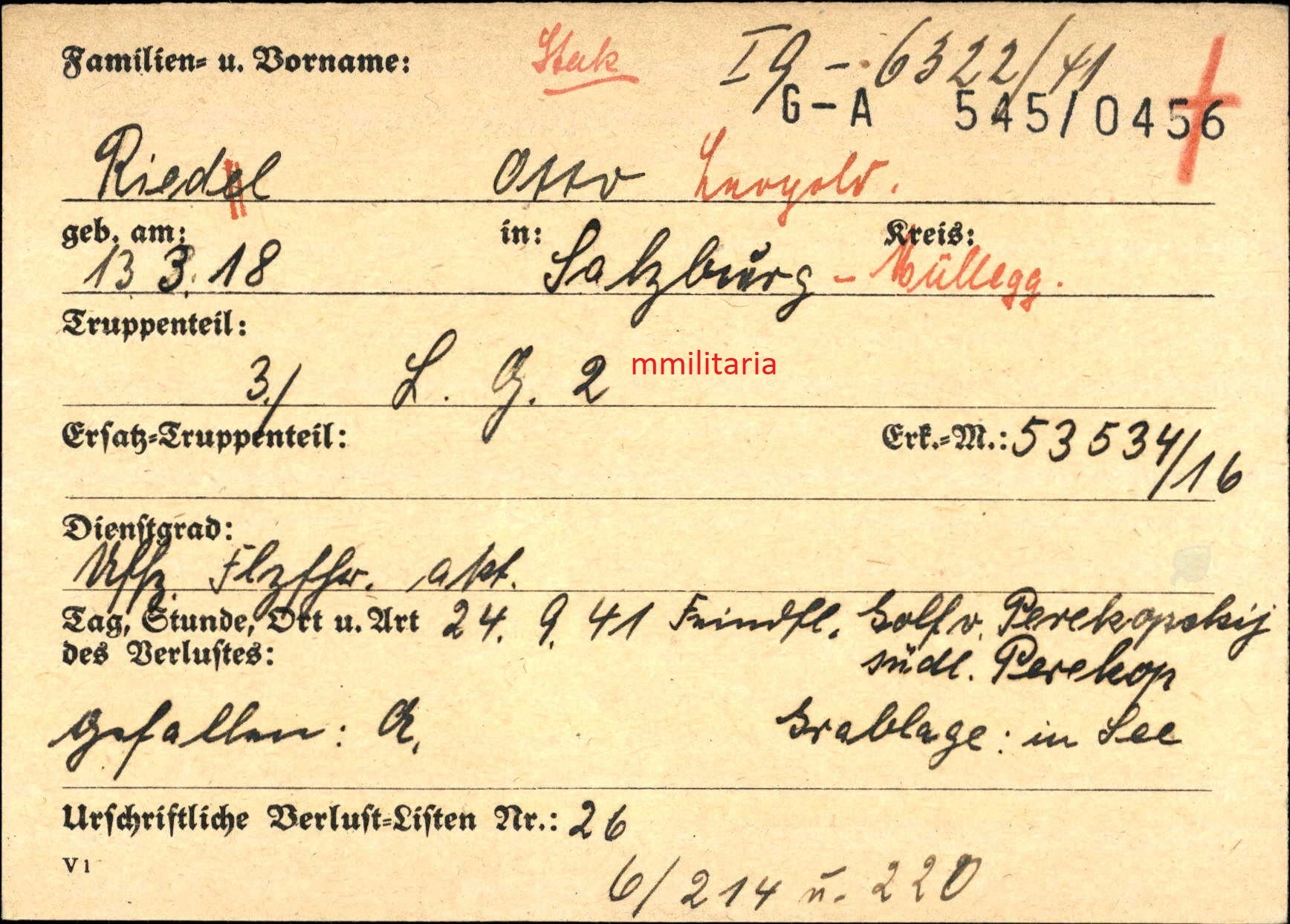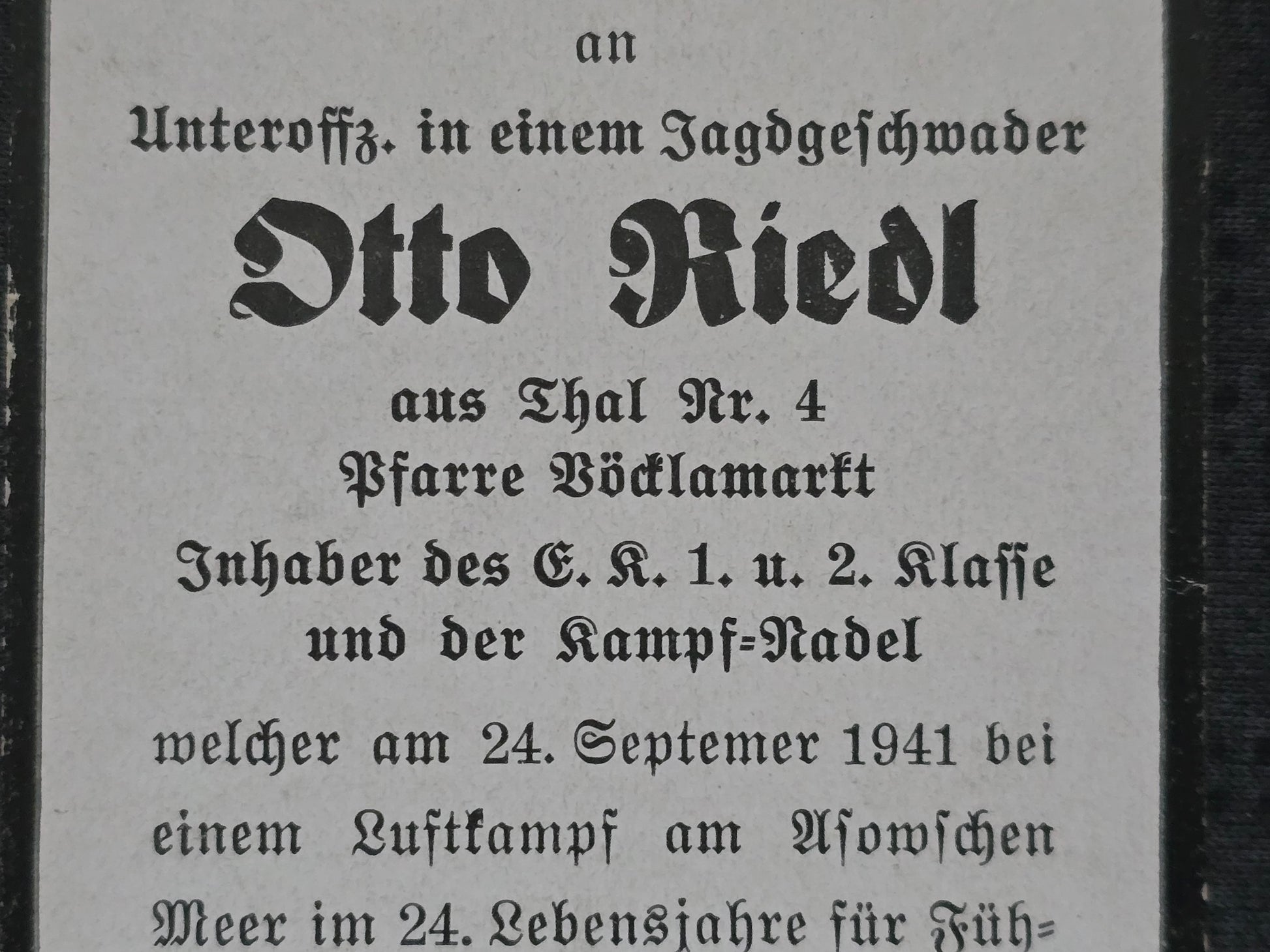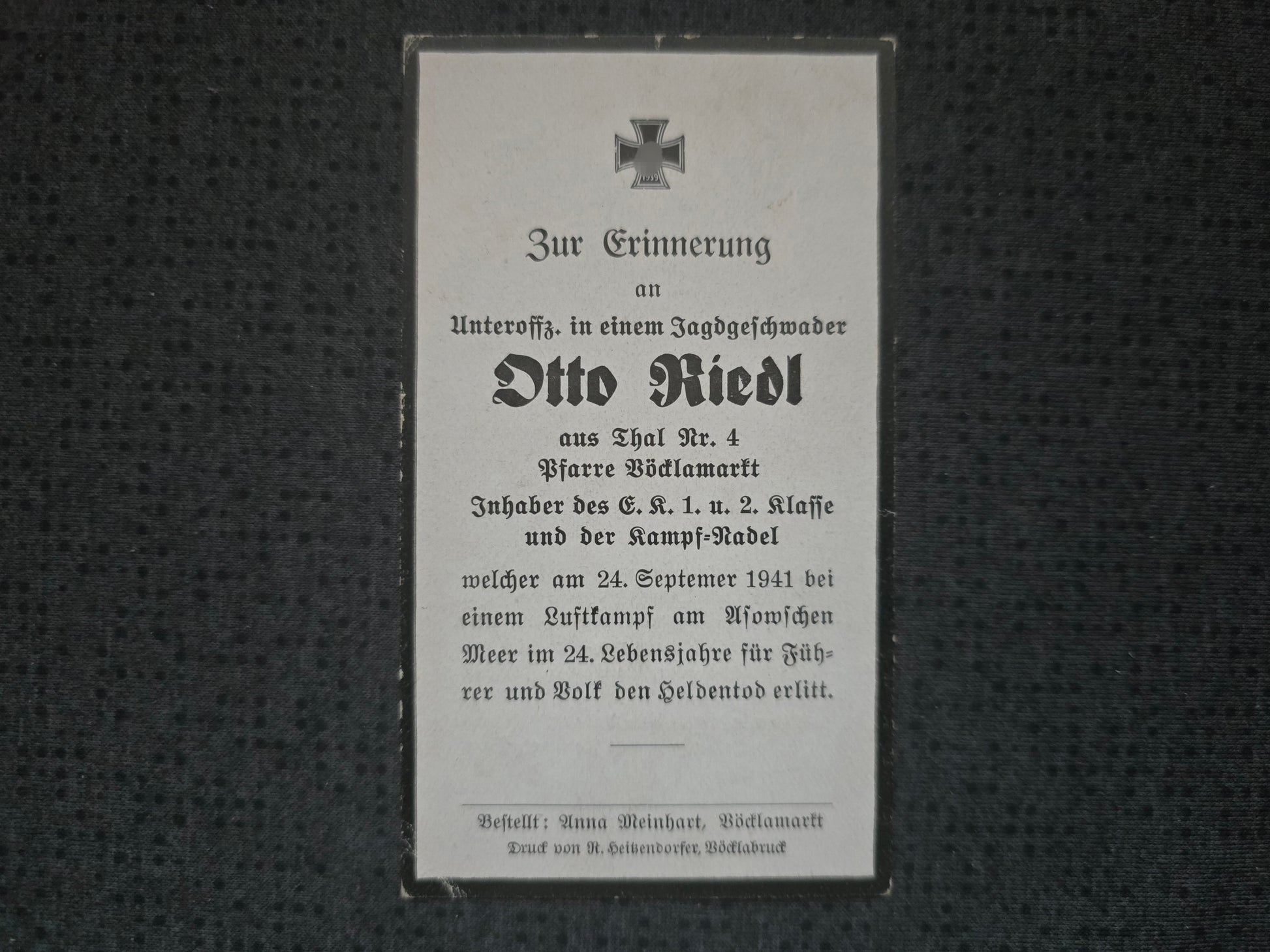 Sterbebild Unteroffizier Vöcklamarkt 3./LG-2 EK I&II Kampfnadel BF-109 Asowsche Meer Perekop Russland