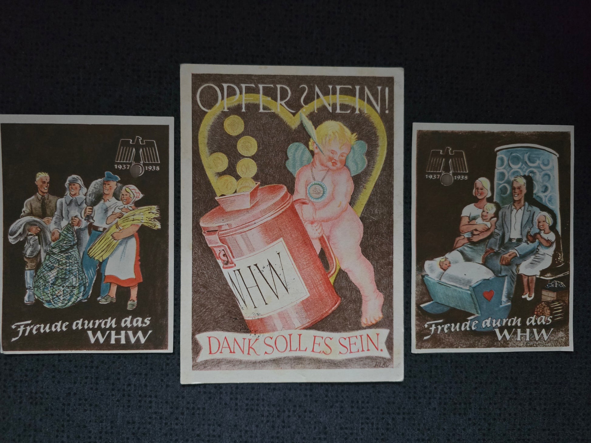 3 x Werbung Propaganda WHW Winterhilfswerk 1937/1938 Gaustraßensammlung