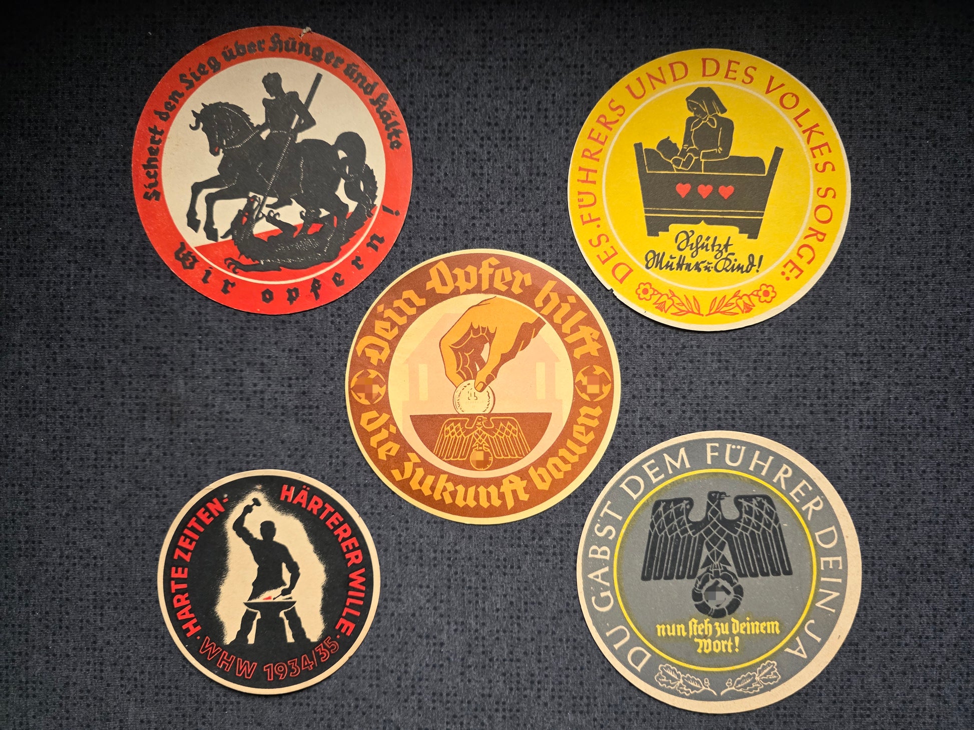 5 x WHW Winterhilfswerk Sammelbilder (Rund) Spendenabzeichen Propaganda Konvolut 6