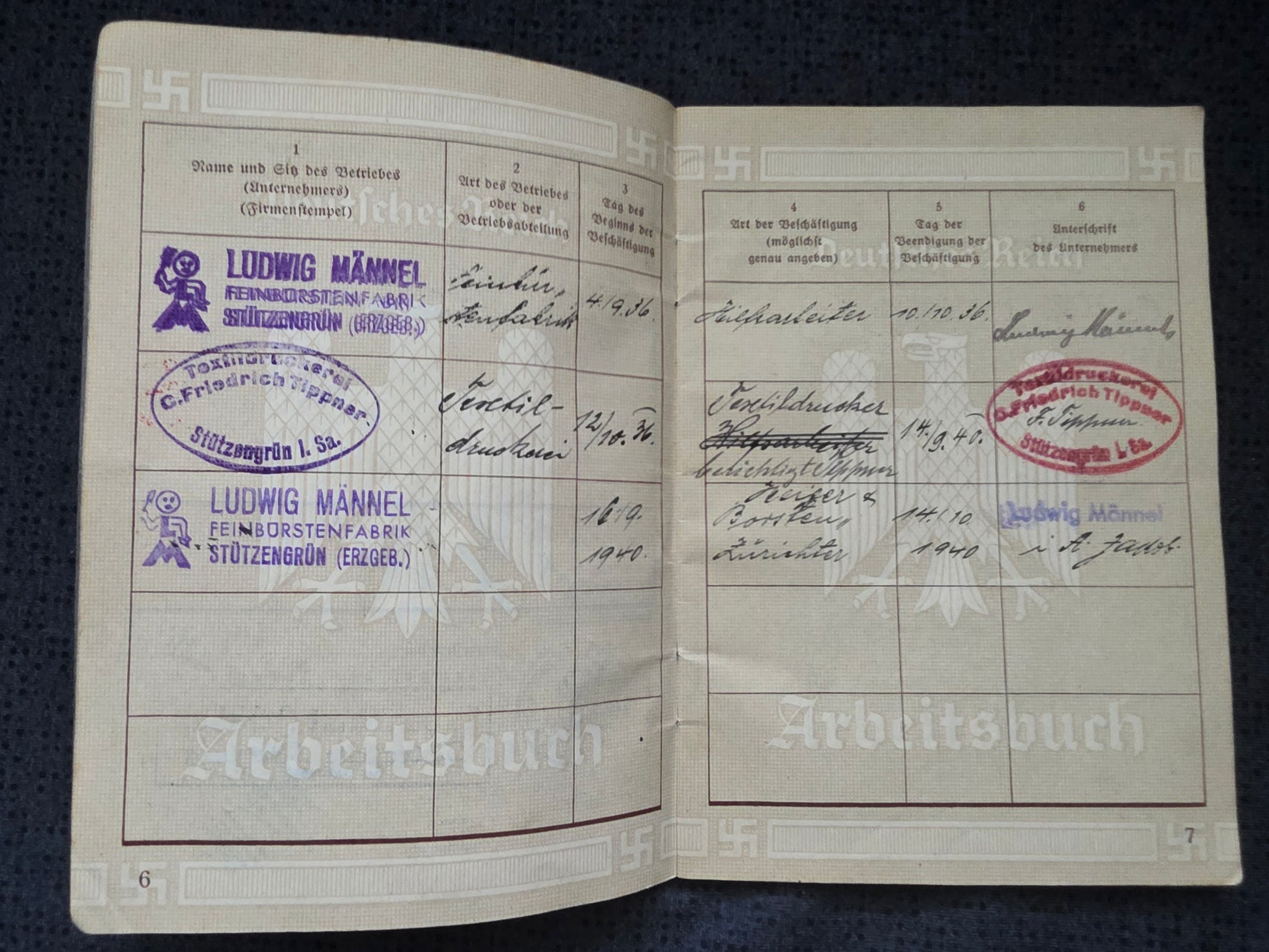 Deutsches Reich Arbeitsbuch Zwickau Luftfahrtfabrikarbeiter 1936