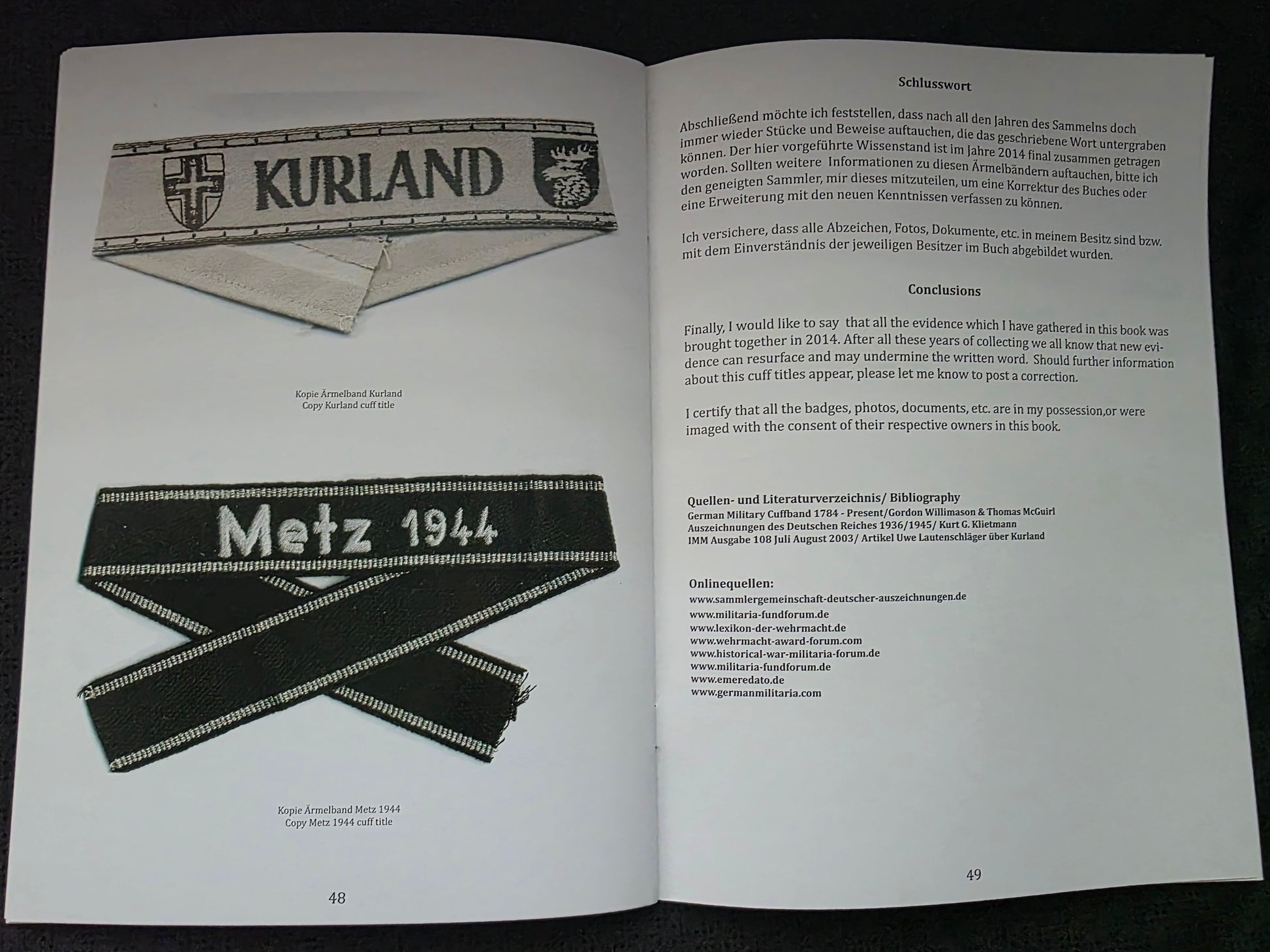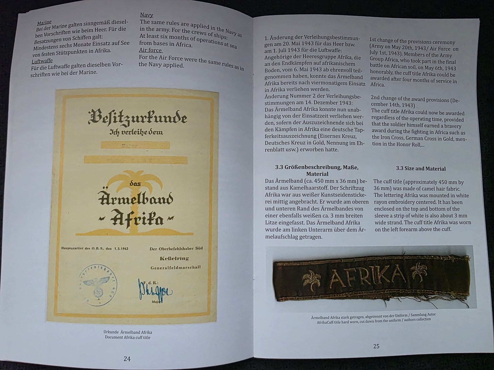 Erkennnungsbuch für Ärmelband Kurland Kreta Afrika Metz