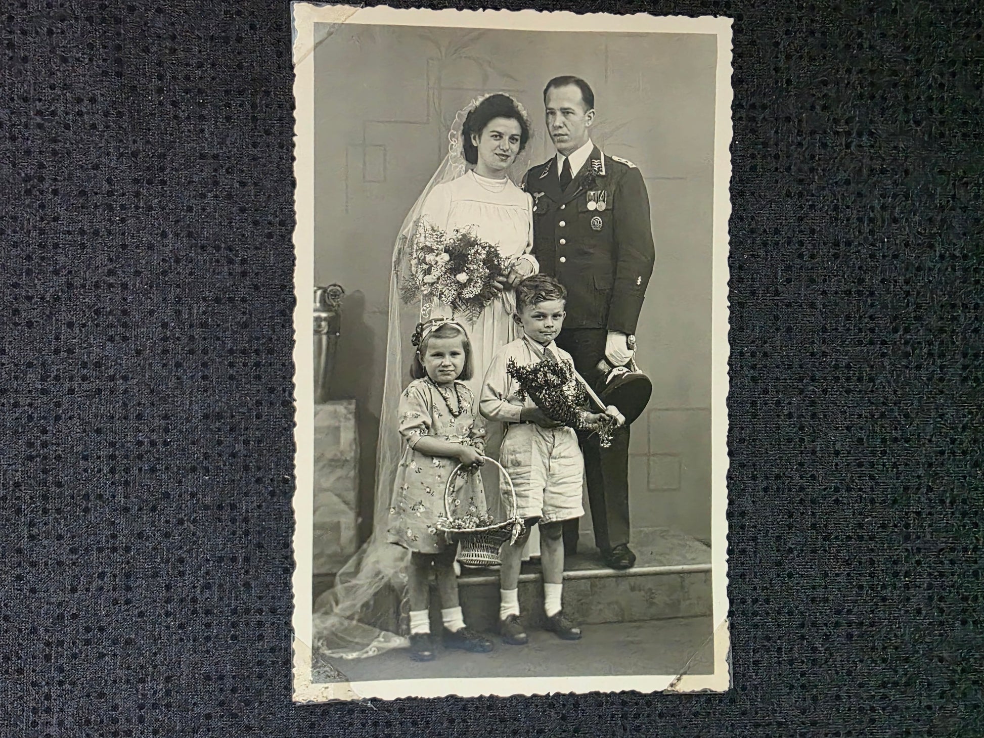 Foto-Ansichtskarte Postkarte Portrait Hochzeit Oberfeldwebel Luftwaffe viele Auszeichnungen