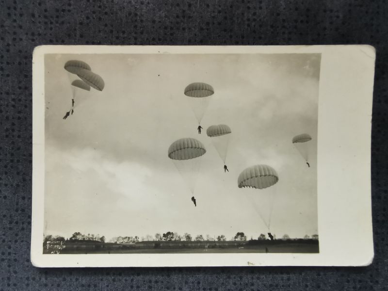 Foto-Ansichtskarte Postkarte "Unsere Luftwaffe" Fallschirmjäger landen