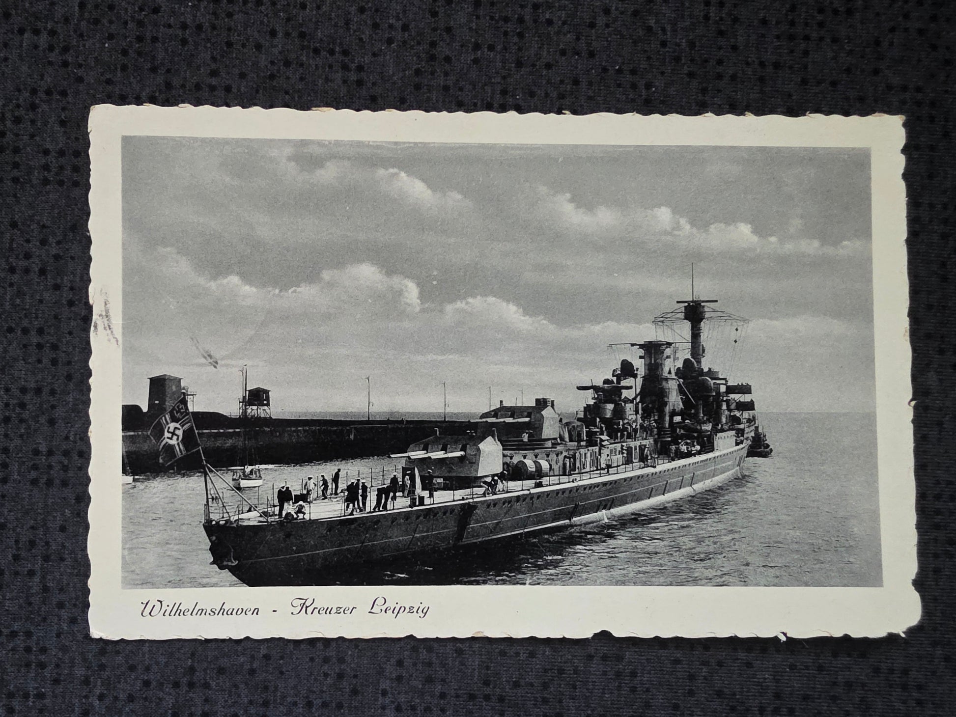 Foto-Postkarte Ansichtskarte Kriegsmarine Kreuzer Leipzig Wilhelmshaven