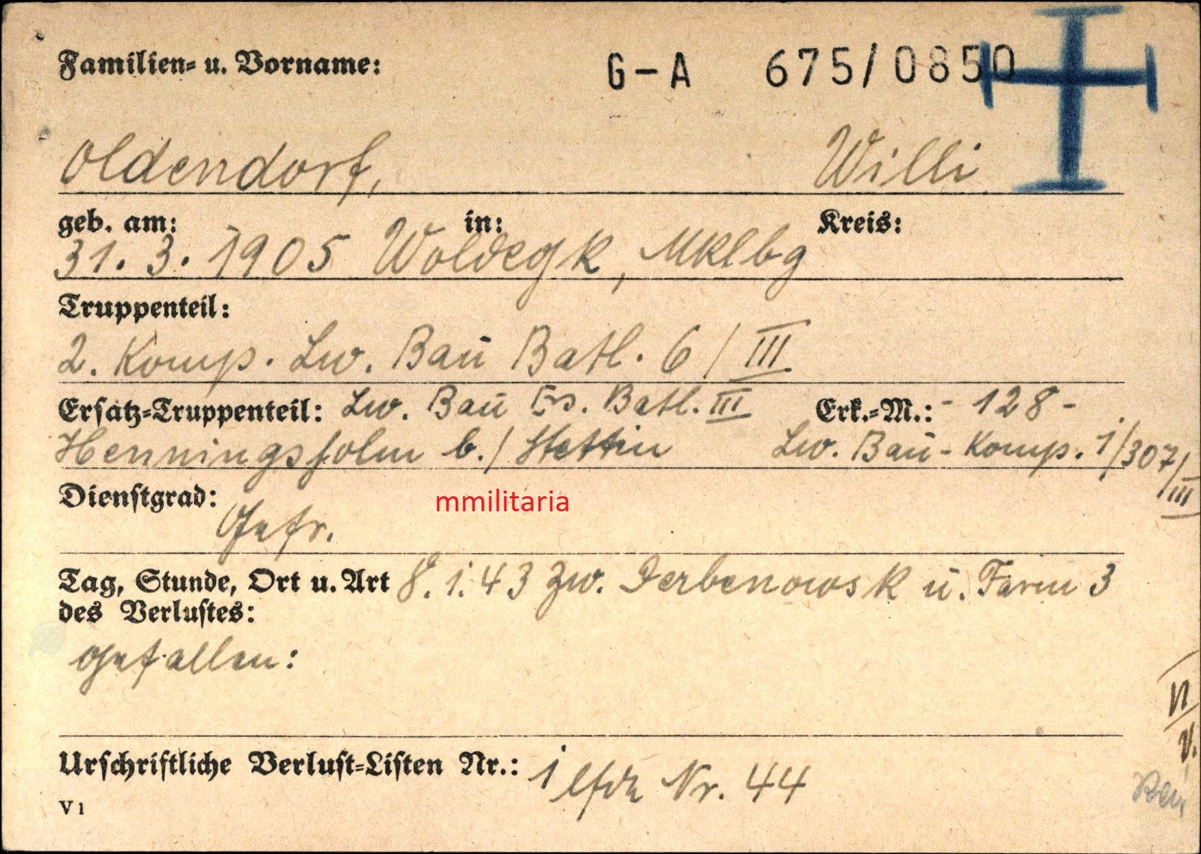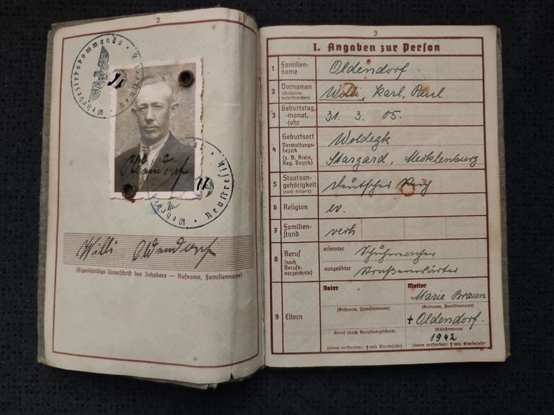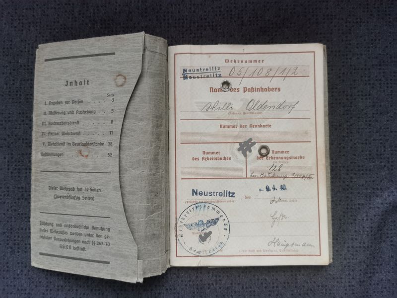 - Wehrpass W. Oldendorf von Wehrbezirkskommando Neustrelitz