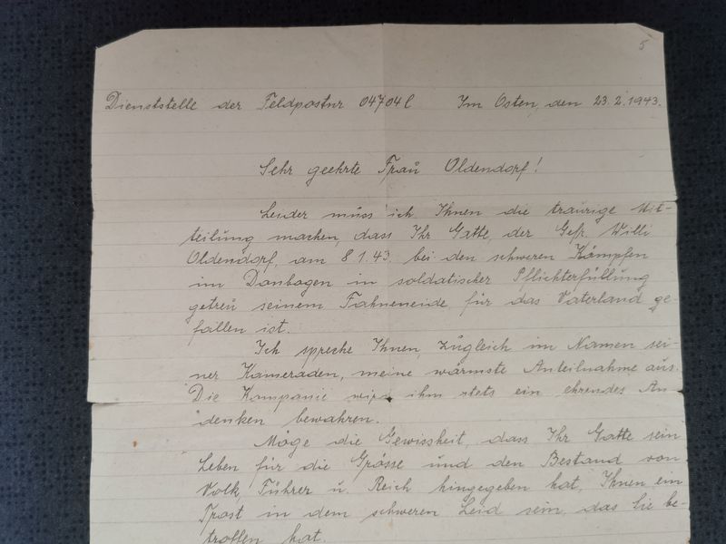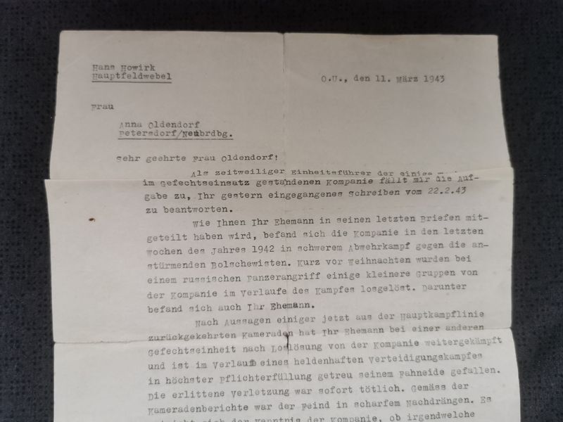 - Trauerbrief Kompanie Führer Feldpostnummer 04704L