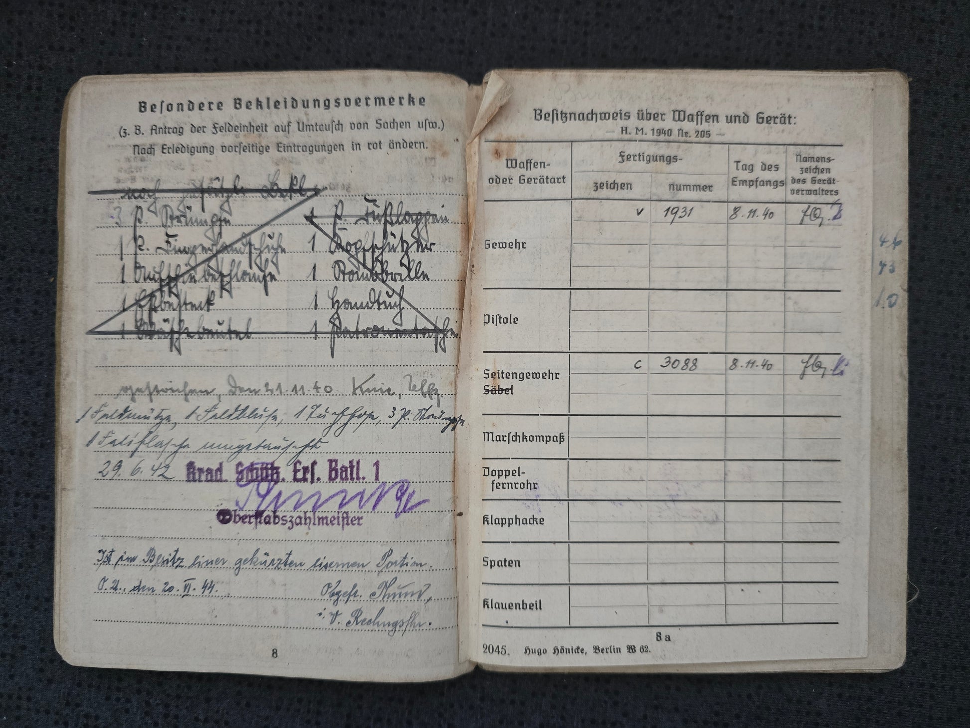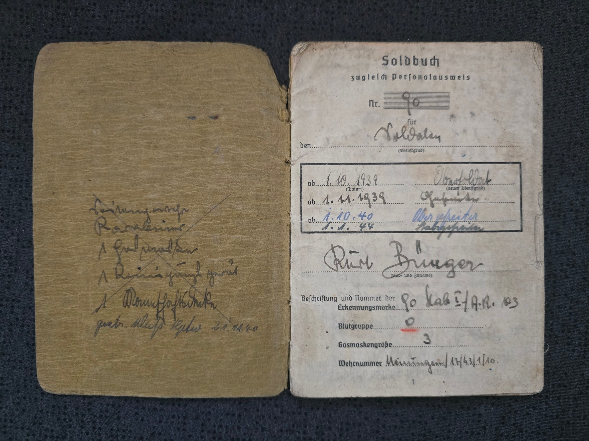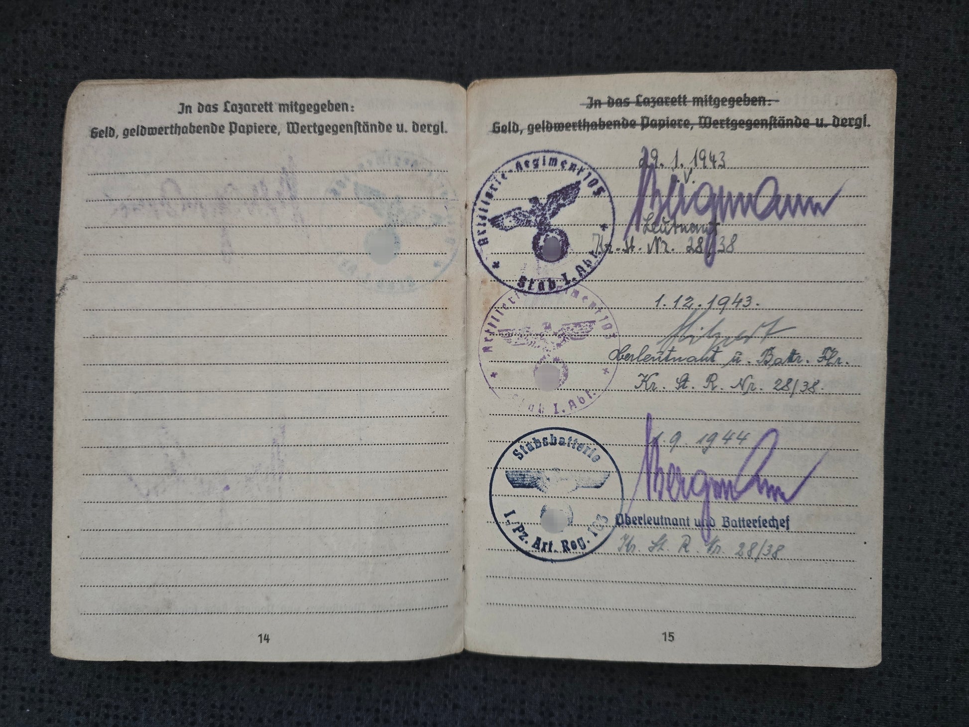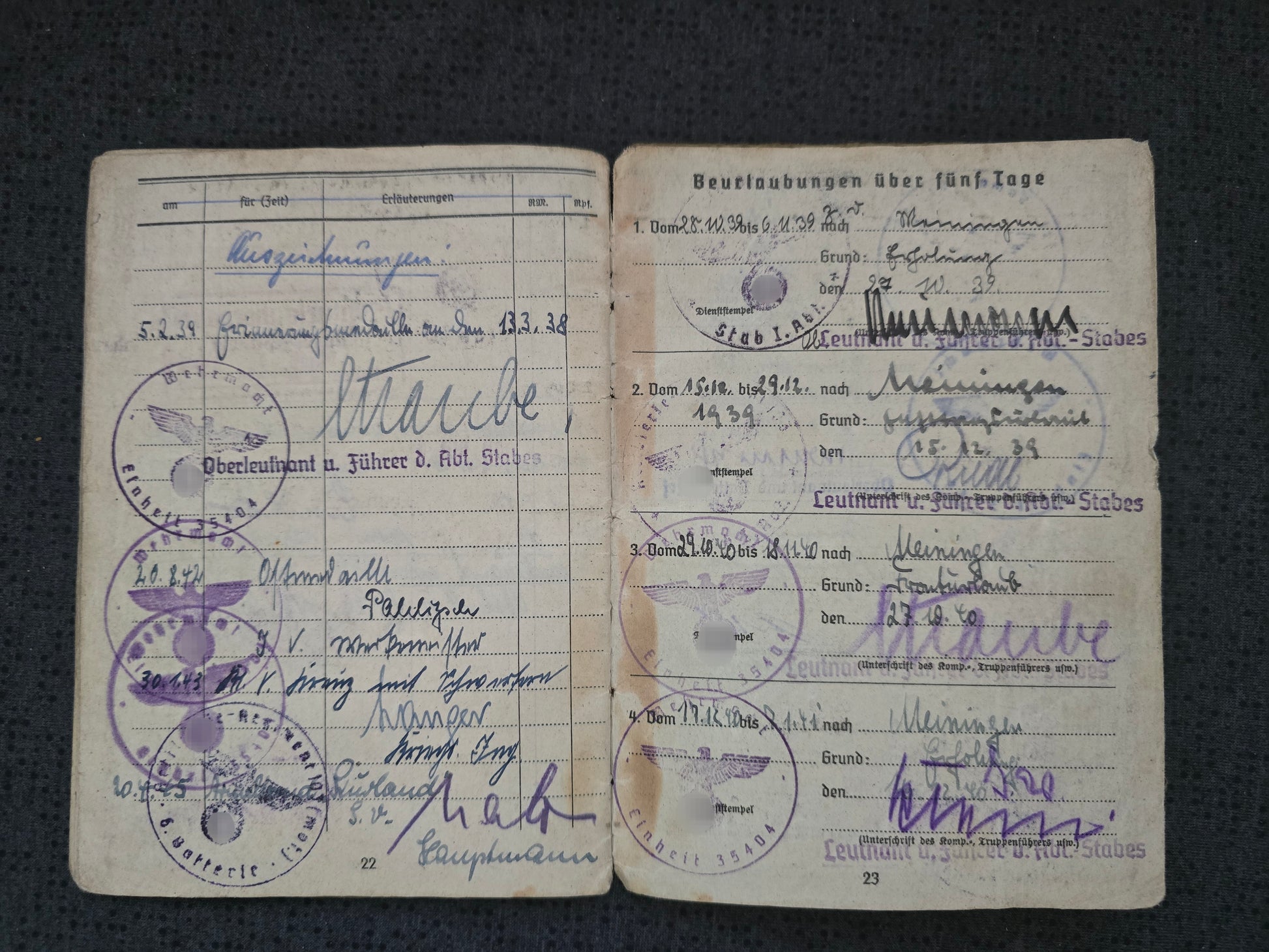 Konvolut Soldbuch + Papiere + Fotos + Erkennungsmarke Stab I Artillerie Regt. 103