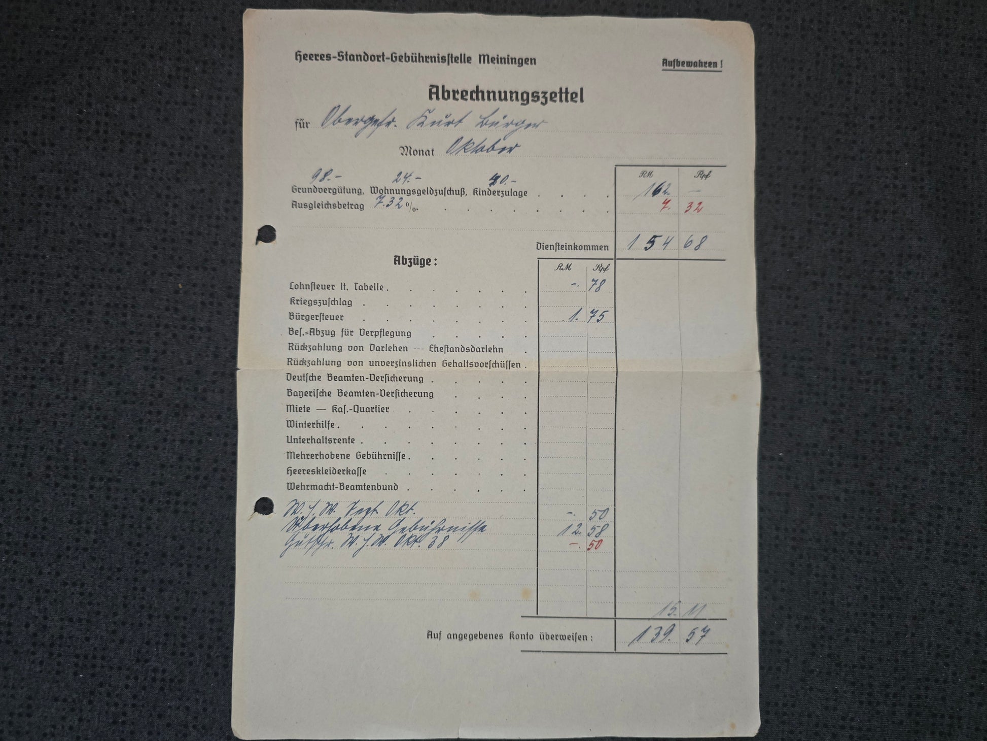 - Abrechnungszettel (Heeres-Standort-Gebührenstelle Meiningen)