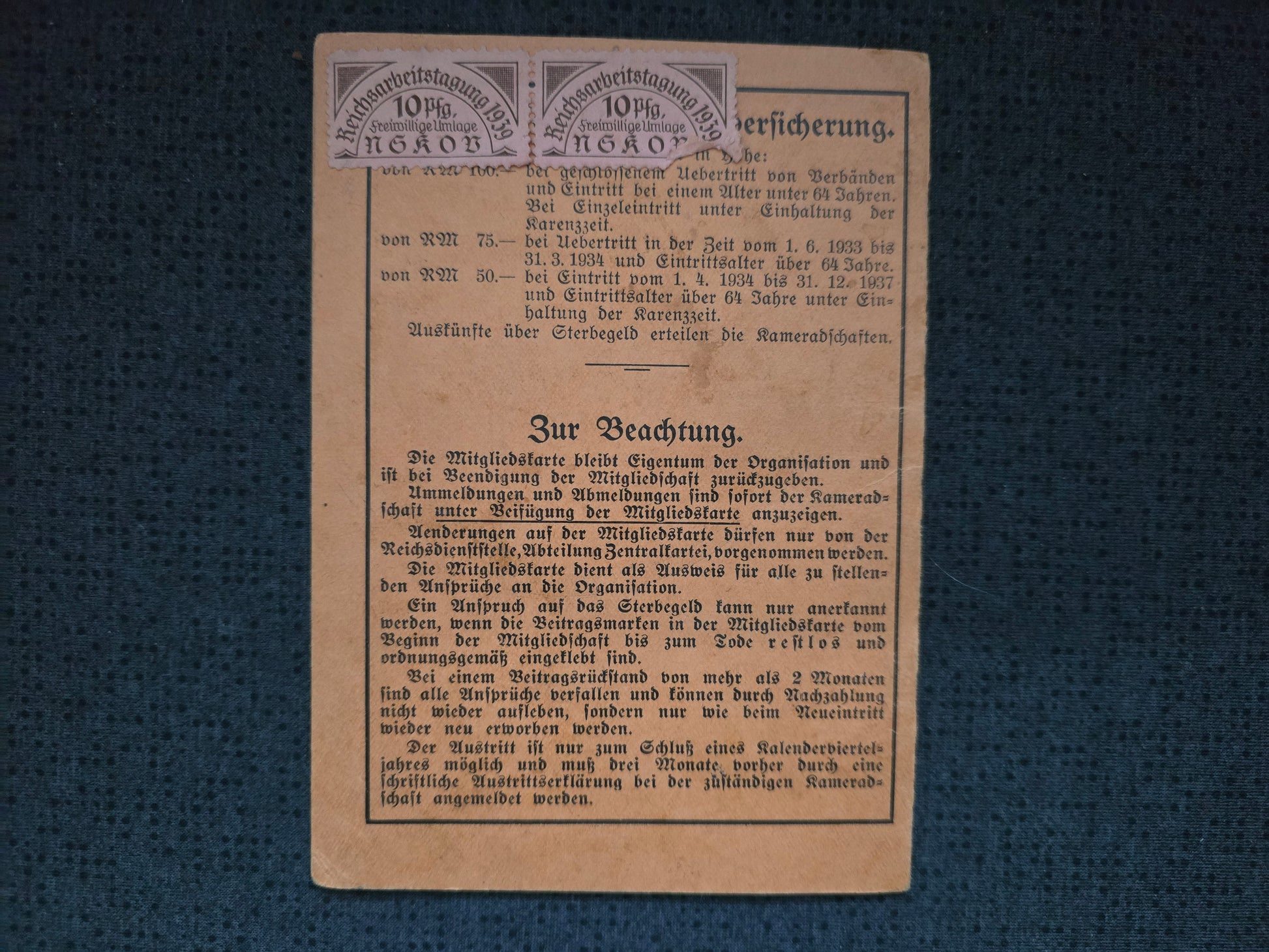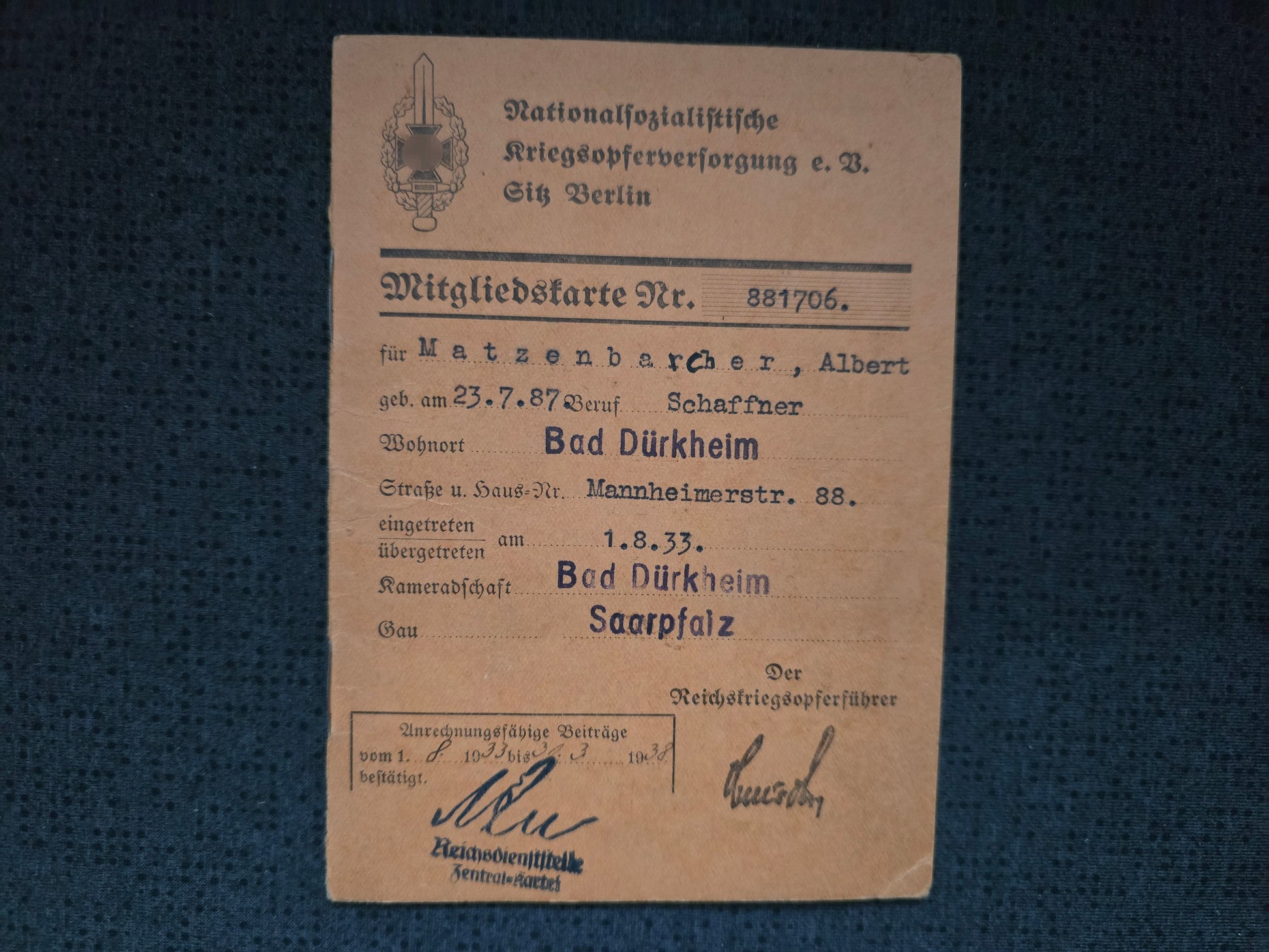 - Mitgliedskarte Nationalsozialistische-Kriegsopferverfolgung 1938/39