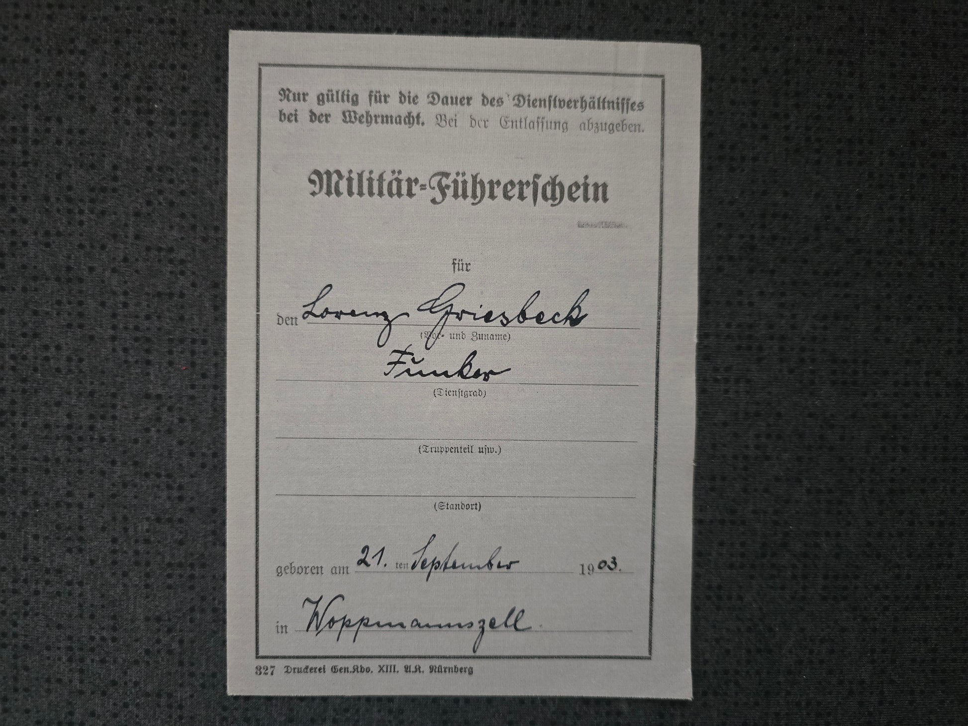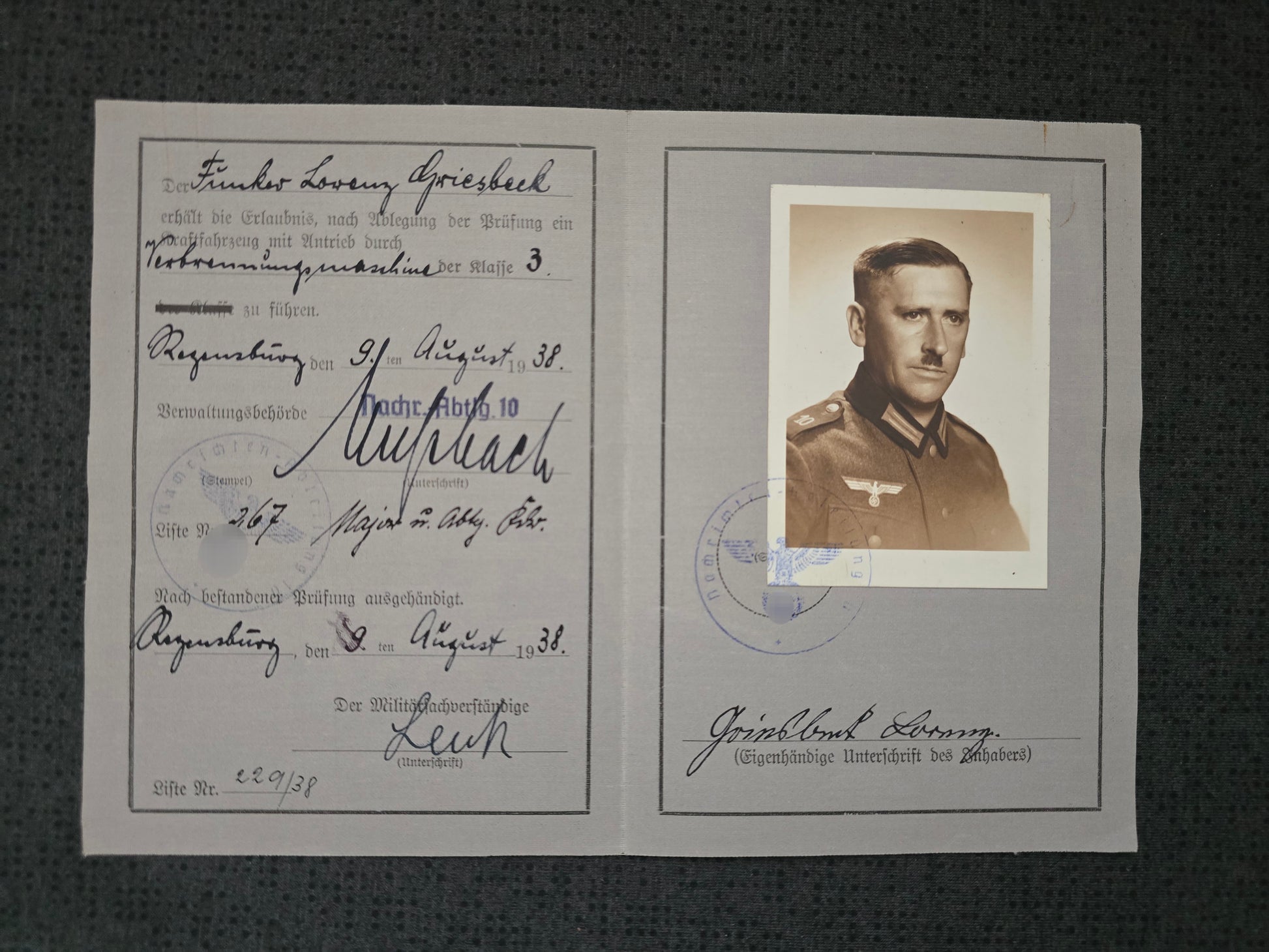 Militär Führerschein der Wehrmacht eines Funkers der Nachrichtenabt. 10